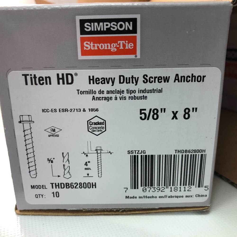 Simpson Strong-Tie THD62800H 5/8" x 8" Titen HD Heavy Duty Screw Anchors 10/pk