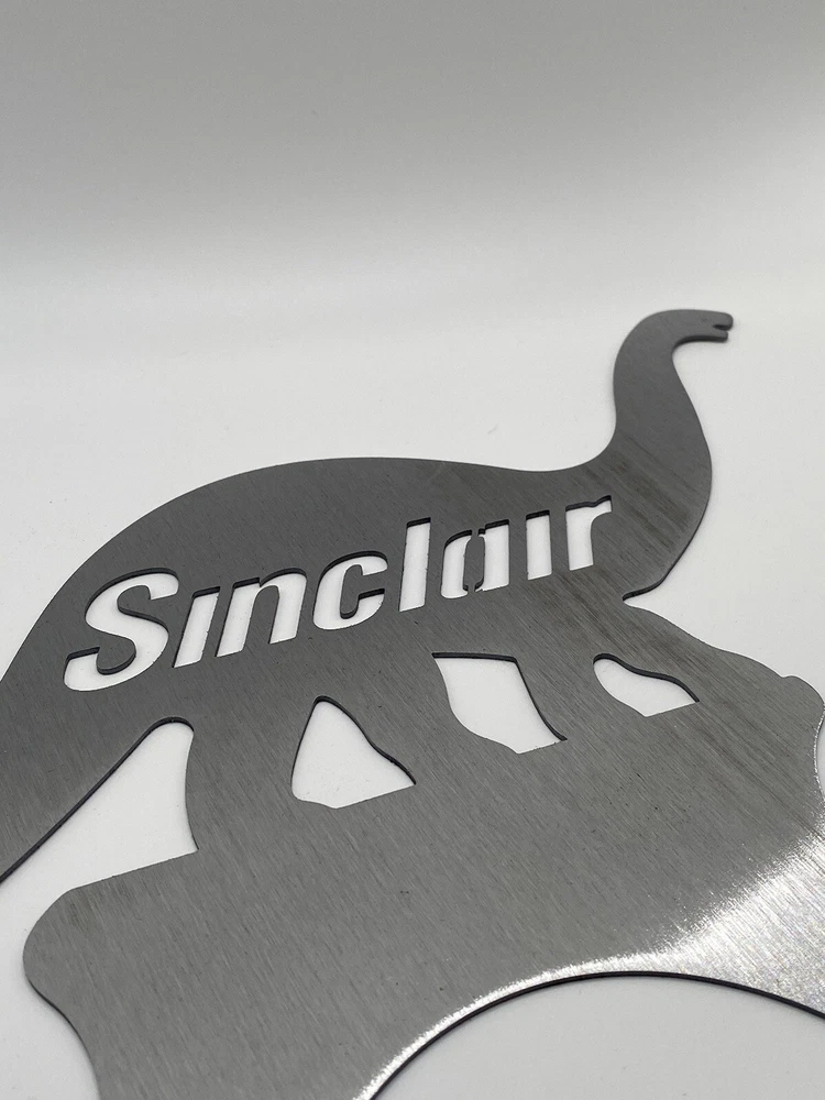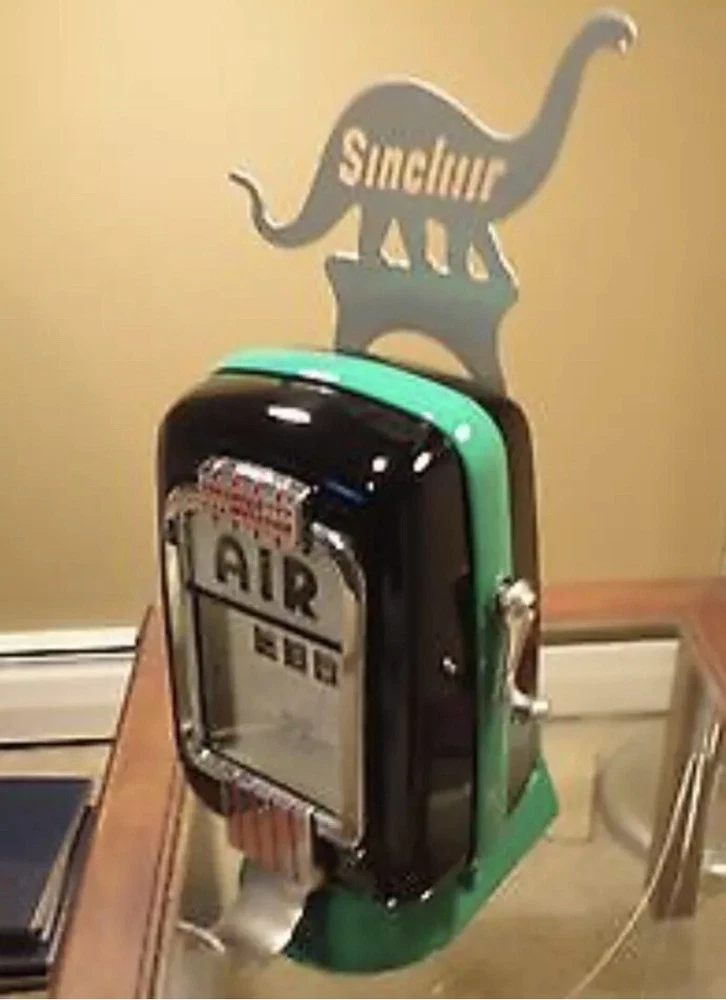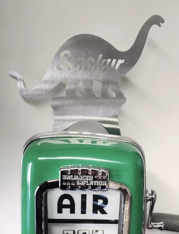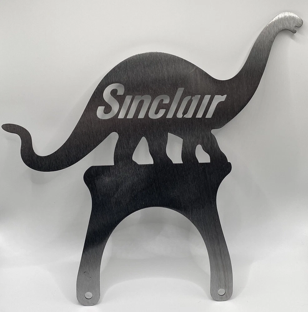 Up for your consideration is an Eco Air Meter Accessory Sign in the form of a Sinclair Dinosaur. These bolt directly to the back of your air tower using the existing bolts. Add this sign to enhance your meter. These have been professionally cut and deburred out of .060 steel. They are ready to be painted or powder coated. Measures about 12" x 9".