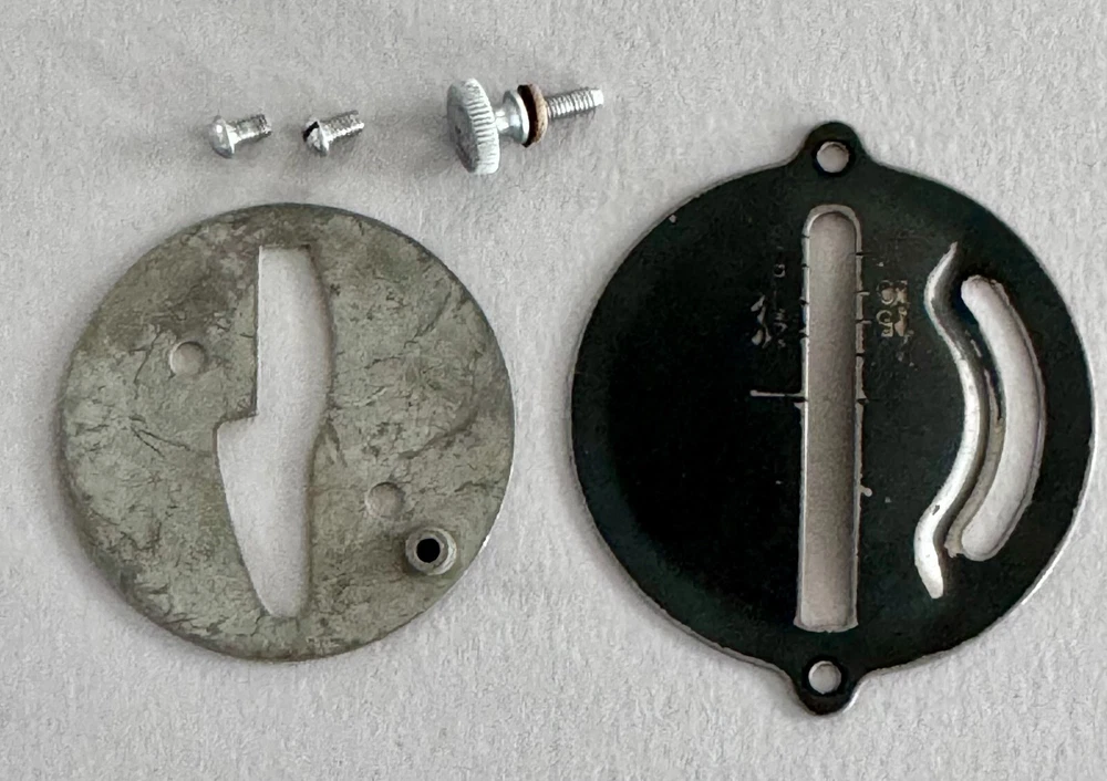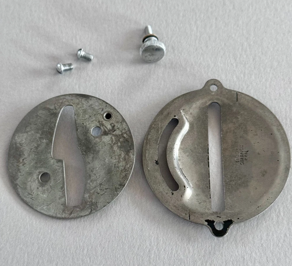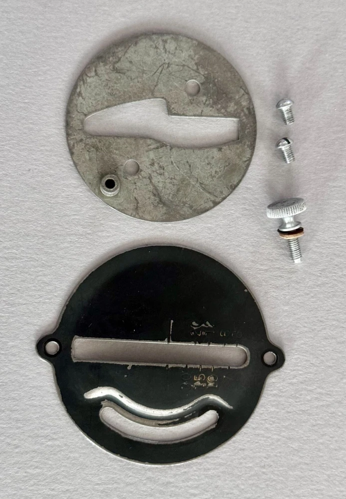 Vintage Singer Stitch Length Regulator Indicator Plate for the Singer 15-88, 15-90, 15-91 and 201 sewing machine. Included are (2) silver mounting screws, Stitch Indicator Back Plate, and (1) Indicator screw. Fair condition, the paint is worn off on small areas and the numbers are not visible anymore. There is no rust.Genuine, original Simanco part #45306 and #45307.