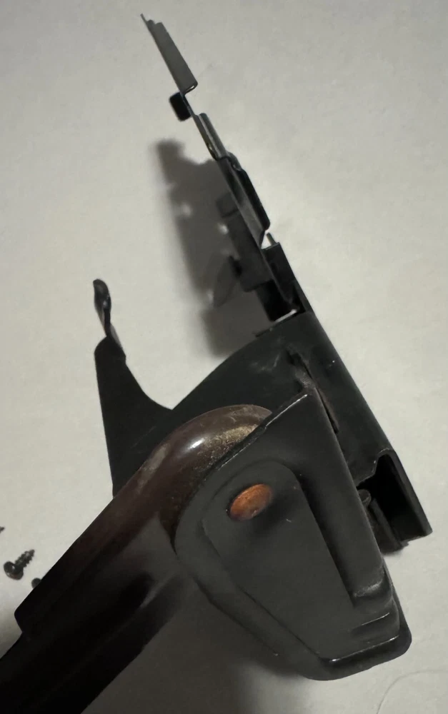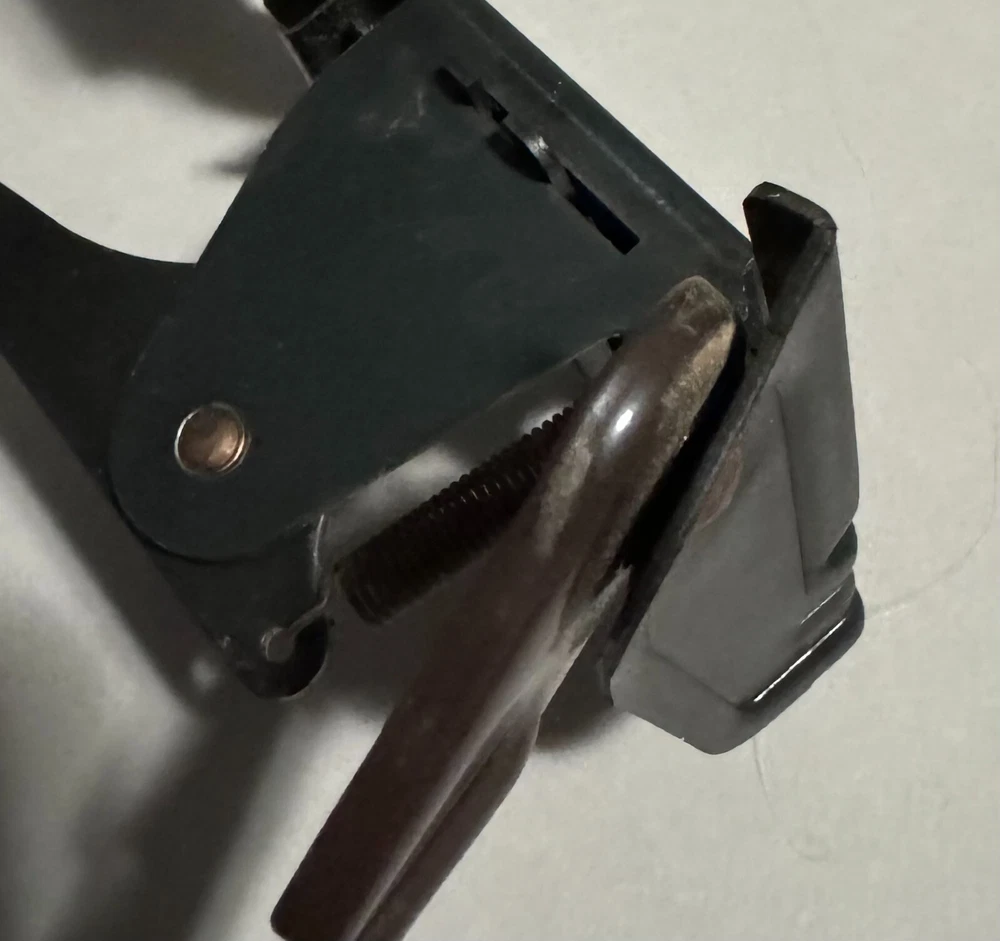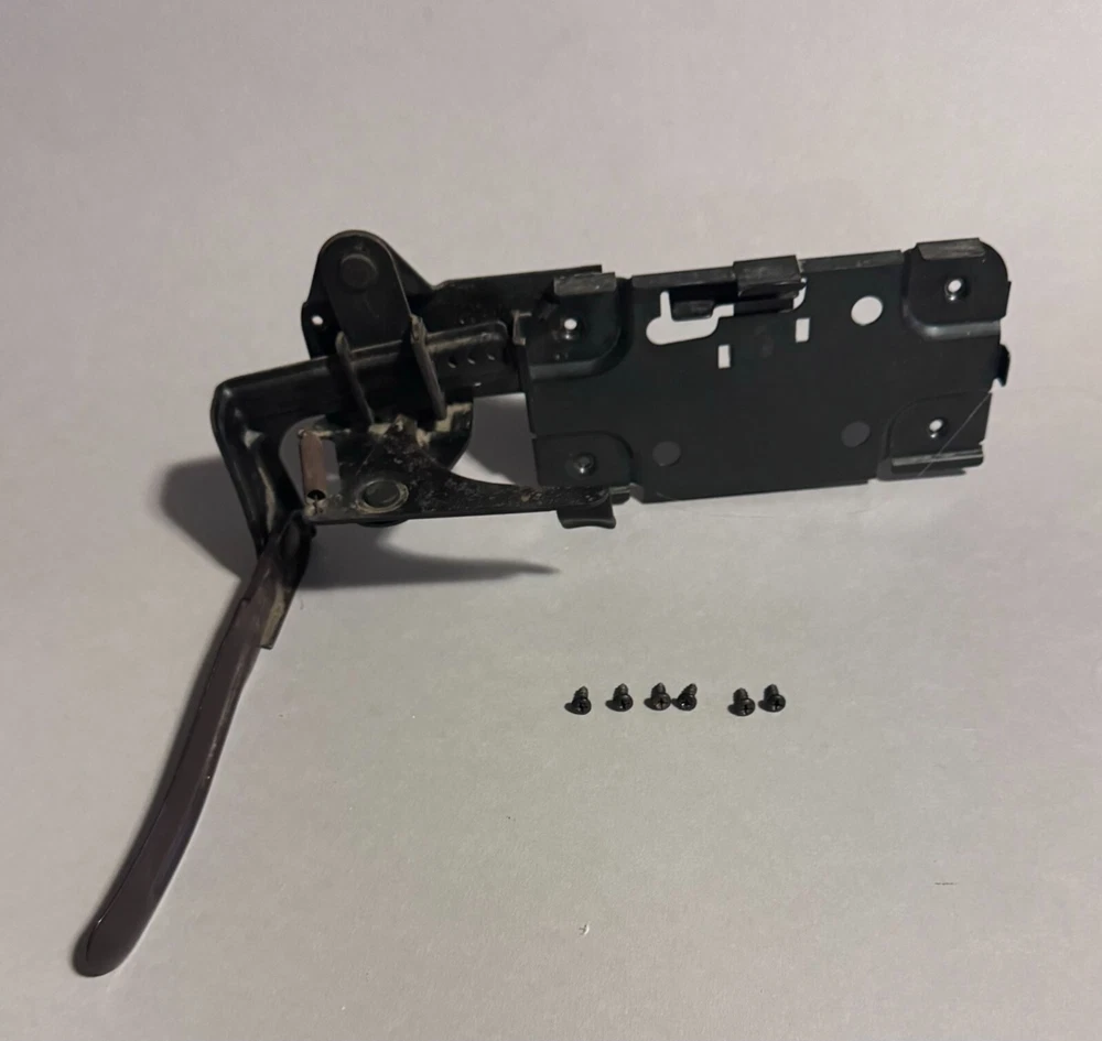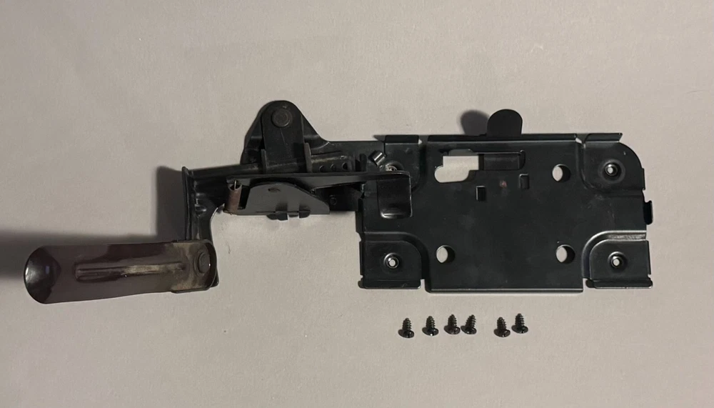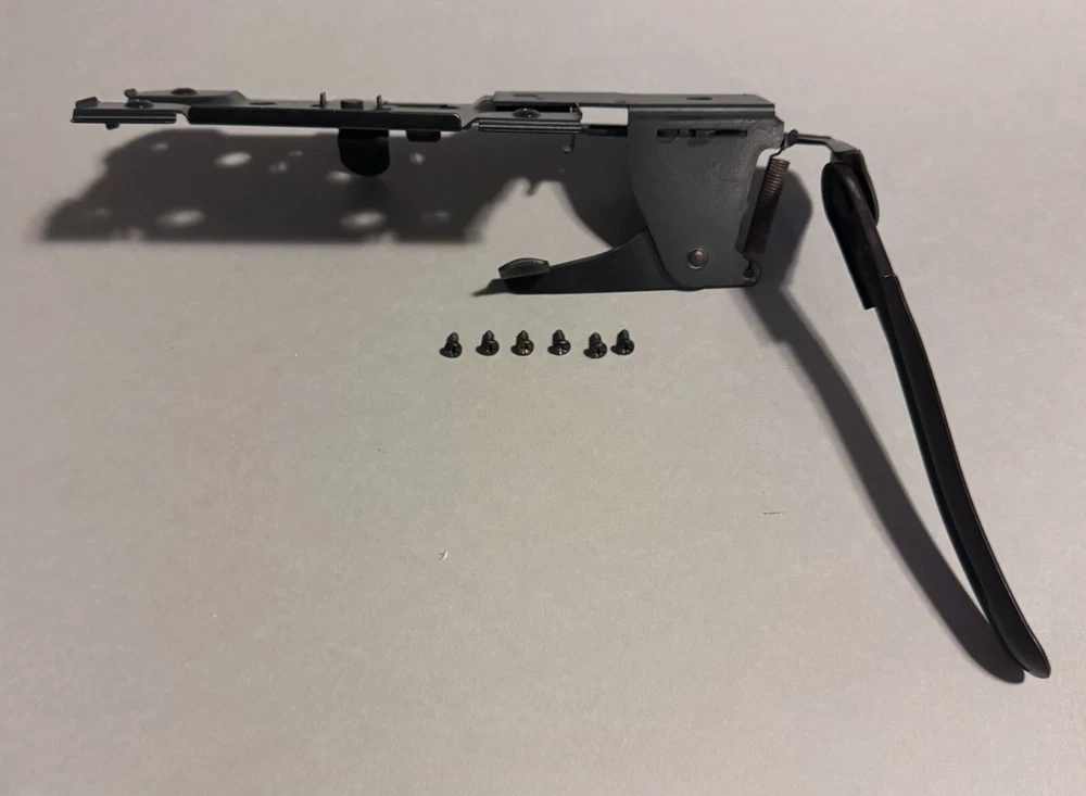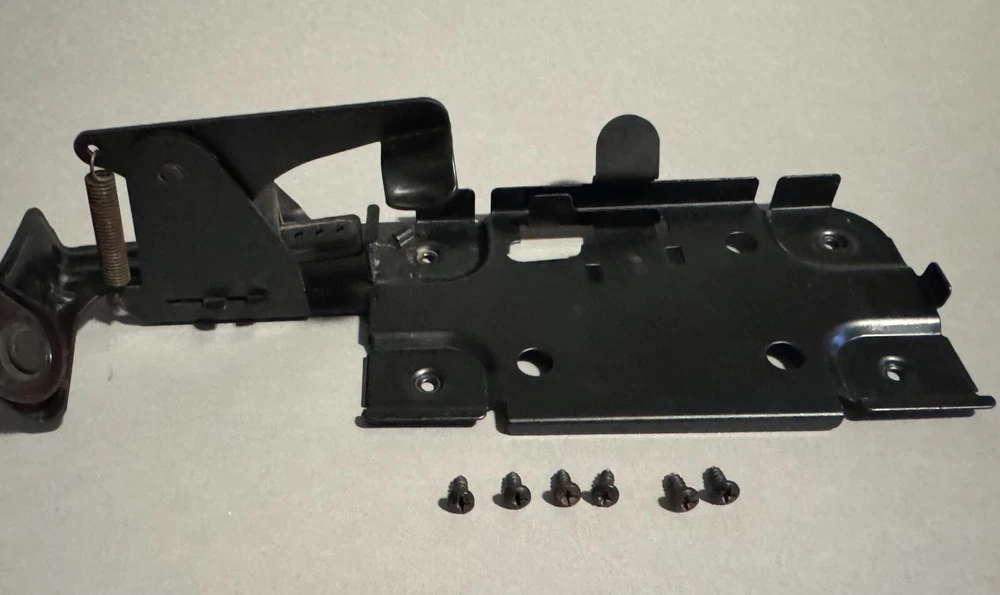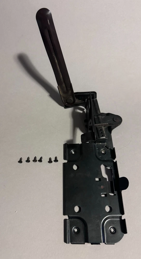 Singer Sewing Machine Cabinet Knee Lever Controller with Pedal Mount and screws. Fair condition with some surface rust on spring and metal slightly bent. Works well. Includes: * Cabinet Knee Lever Controller with Pedal Mount * 6 screws to mount Knee Lever Controller and Pedal Mount