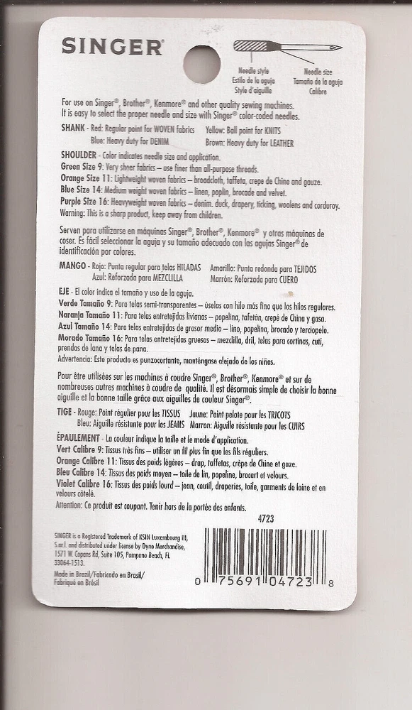 Singer Sewing Machine Needles Regular Point 90/14 Style 2020 Universal Pkg of 4 - New In Sealed Package - See Photos Showing Actual Item You Will Receive - FREE Shipping U.S.A. - USPS Ground Advantage With Tracking - Orders Ship 1 Business Day After Payment is Received