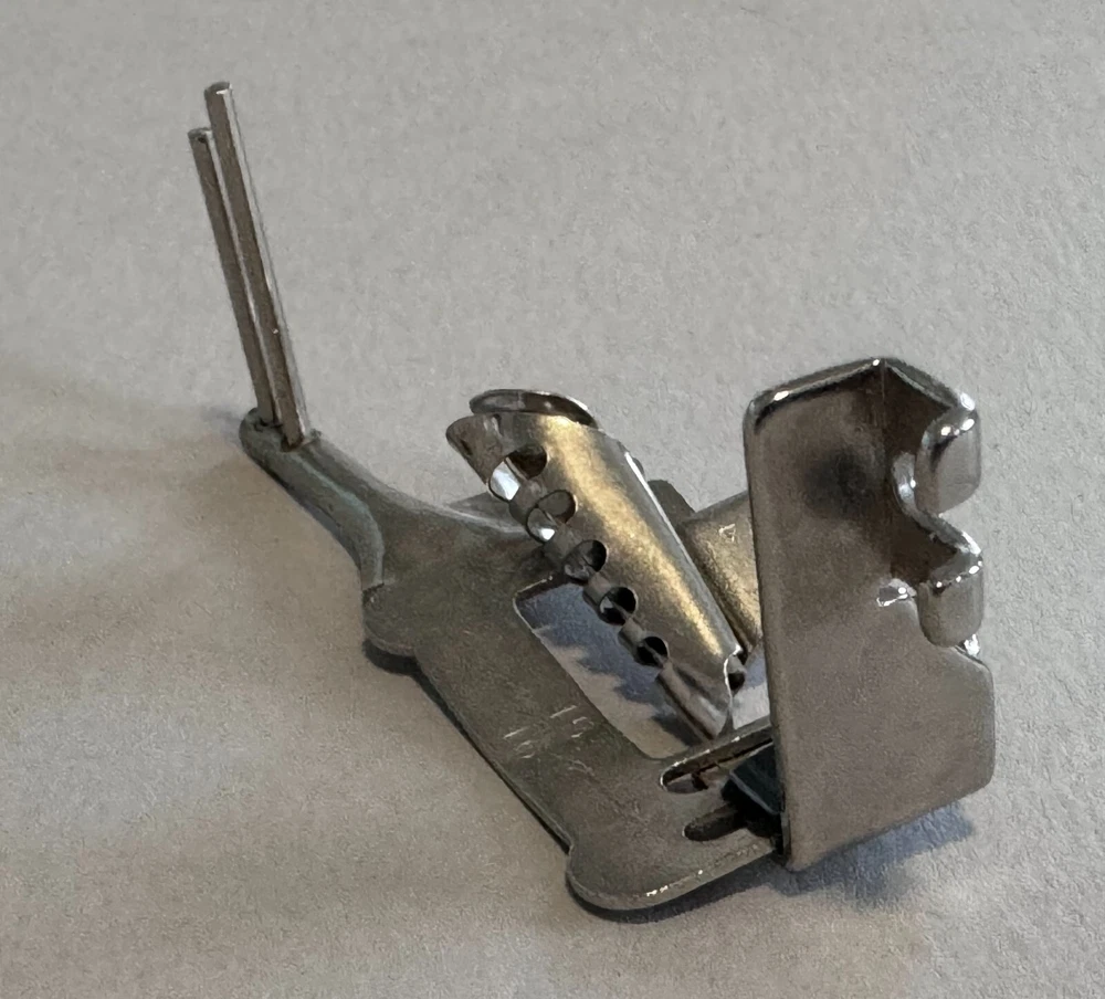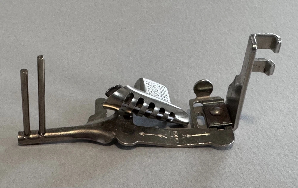Enhance your sewing experience with the Singer Multi Slotted Binder Foot Slant Shank Simanco #161174. The Multi Slotted Binder Foot is perfect for sewing enthusiasts who want to add a professional touch to their projects. Upgrade your sewing game with the Singer Multi Binder Foot Slant Shank Simanco #161174. This version has the elongated needle hole which makes it compatible with zigzag machines such as the 401, 403, 411, 500, 503, etc. Good vintage condition, clean & rust free. Original, genuine Simanco accessory, part #161174