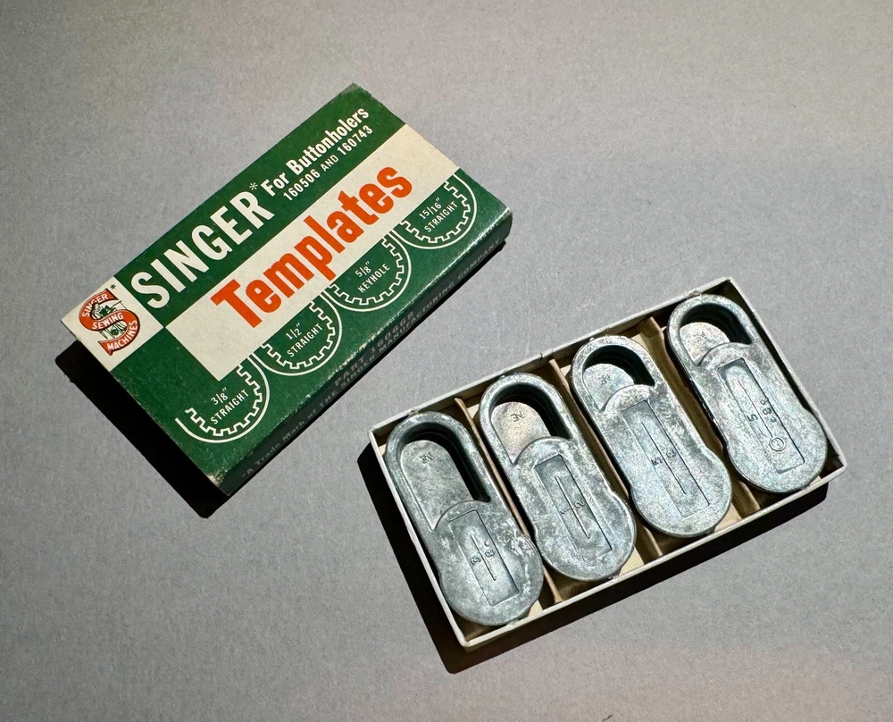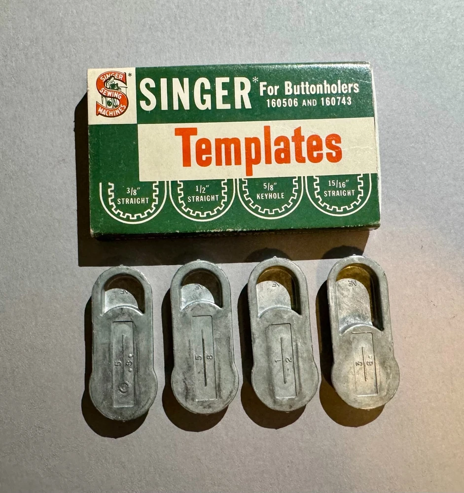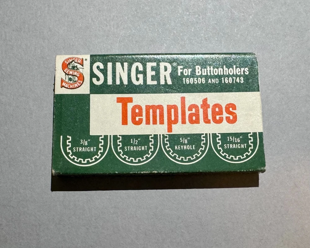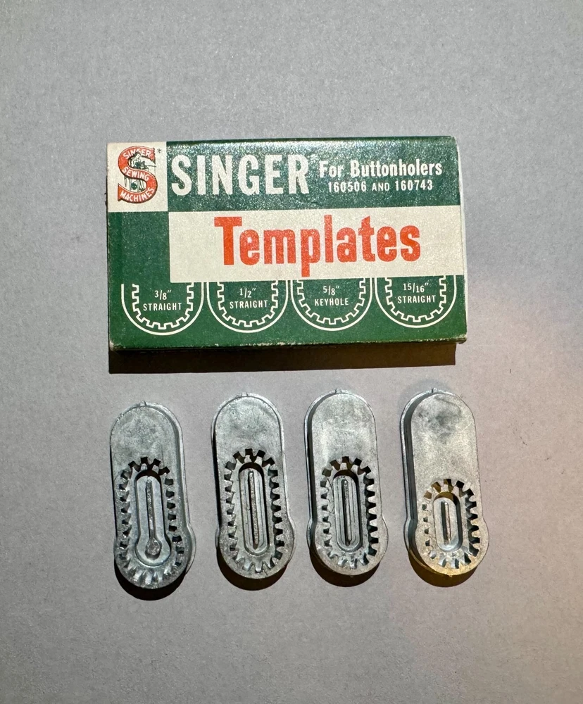 Enhance your sewing experience with these high-quality Original Vintage Singer Templates for Buttonholers 160506 and 160743. Crafted with precision and attention to detail, these templates are perfect for those who demand the best in their sewing equipment. Includes the original Singer Template packaging box and 4 Singer Templates.