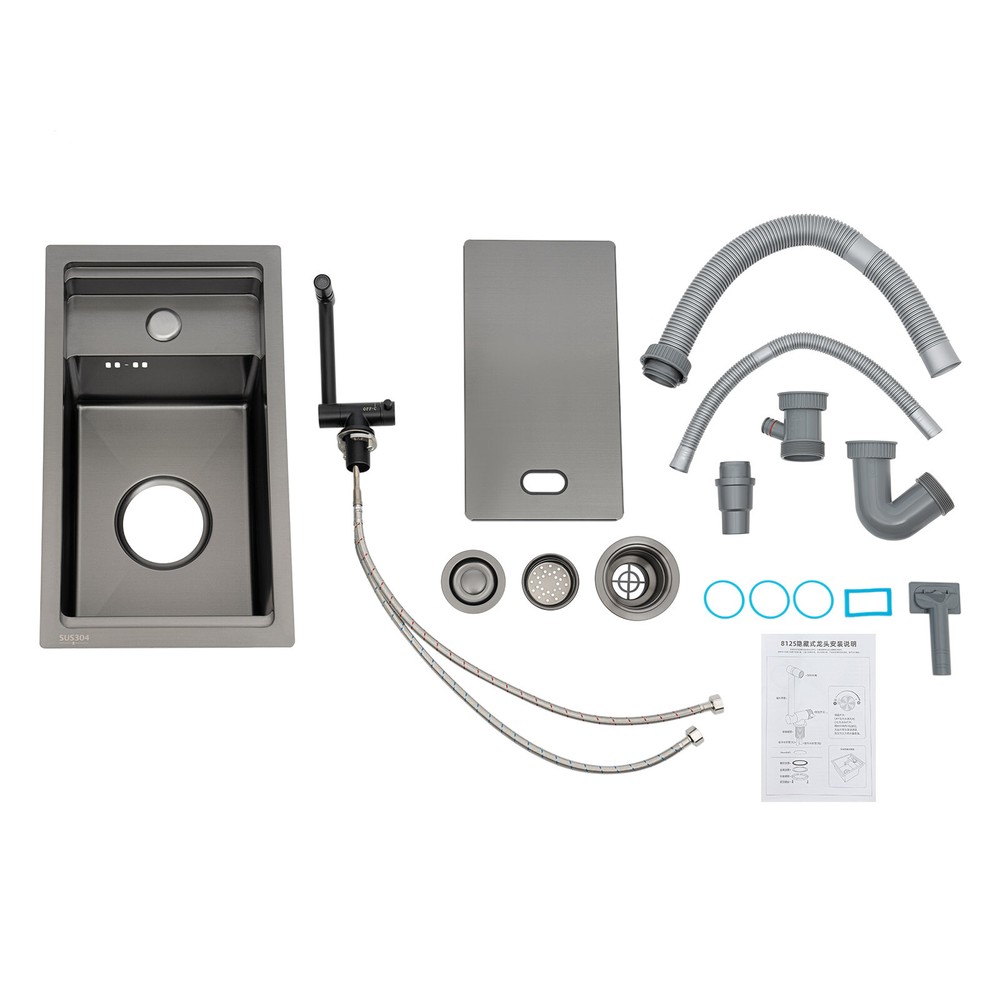 Single Bowl Kitchen Bar Sink Hidden Drop-in Kitchen Sink with Folding Faucet New ❤Welcome❤ Description Traditional sinks always have various problems, such as being too small, difficult to clean, and breeding bacteria. This stainless steel utility sink is made of 304 stainless steel and adopts a wire drawing and black diamond nano processes. It has a super large capacity and is oil-resistant, scratch-resistant, and high-temperature-resistant. With it, you can enjoy a more convenient and healthy life. Key Features Build to Last: High-quality stainless steel and exquisite black diamond nano and wire drawing processes make this item solid and have excellent corrosion resistance, oxidation resistance, and wear resistance , so it can withstand high-volume fast-paced commercial kitchen environments. Huge Space: The large storage space(16.9*9.8*8.7in) can accommodate a large number of plates at the same time, making it easy for you to clean after a gathering. Sufficient depth also reduces water splashing. Careful Design : The back is equipped with a sound-absorbing pad to reduce noise and a waterproof v apor condensation coating, which can keep it dry and clean for a long time without moisture regain. The foldable faucet with dense water outlets (360-degree rotation) (up and down 90 degrees) can bring you a more comfortable experience and reduce space occupation. Excellent Drainage: The multi-tier sealed and thickened U-shaped PP drainage pipe (inner diameter 3.54 inches, outer diameter 4.33 inches) that can resist deformation e ven when bent, and the detachable filter basket ensure faster drainage, reducing food and debris blockage and odor backflow. Easy to Clean : The smooth and oil-resistant surface and streamlined rounded corners allow you to easily clean it with water, a soft towel, and neutral soap. Simple Installation: Complete accessories and a simple structure greatly reduce installation difficulty and save installation time. You can also choose to install it on or in the countertop according to your needs, which is more convenient. Practical Accessories: The lid with hanging holes can effectively reduce the entry of dust and insects, and it is also convenient to hang on the wall, saving space. High-quality Service : We are committed to providing high-quality service. If you encounter any problems, please do not hesitate to contact us. Details Ceramic Valve Core: It has excellent explosion-proof performance and precise control of cold and hot water, ensuring safe, reliable, and leak-free operation. Sealing Ring : Multiple sealing rings can effectively reduce water leakage and save costs. Convenient Knob: This clearly marked handle allows you to adjust the temperature more conveniently. Overflow Hole : When water is full, it is discharged from the overflow port, effectively solving the problem of overflow. Application This product can be widely used in homes, restaurants, dessert shops, coffee shops, hotels, garages, gardens, pet shops, etc. for cleaning tableware, vegetables, fruits, pets, etc. Specification Material: 304 Stainless Steel Material of the Water Pipe: PP Color: Black Style: Modern Shape: Rectangular Surface Treatment: Wire Drawing and Black Diamond Nano Shape: Rectangle Installation Method: Countertop, Countertop Middle Assembly Required: Yes Number of Items: 1 Number of Hoses: 2 Swivel Angle of Faucet: 90 Degrees Rotation Angle of Water Outlet Nozzle: 360° Gross Weight: 7.62kg/16.8lbs Hose Length: 60cm/23.62in Inner Diameter of the Water Pipe: 90mm/3.54in Outer Diameter of the Water Pipe: 110mm/4.33in Product Size: 42.93*24.89*22.1cm/16.9*9.8*8.7in Package Size: 52*37*41cm/20.47*14.57*16.14in Package Included 1*Stainless Steel Utility Sink 2*Hoses 1*Chinese Manual All Accessories Required for Installation Notes Please confirm the appropriate size before purchasing. Please wear protective gloves during installation to avoid injury. The anti-condensation tier has the function of protecting the water tank from collision and deformation during transportation, so a small amount of detachment is a normal phenomenon and does not affect normal use and appearance. Besides, there may be some slight production marks on the surface of the product. Please allow the slight color difference caused by the shooting light and the 1-3 cm error due to manual measurement, and make sure you do not mind before ordering. *Description* Welcome!?? If you have some problem, please contact with us.???? ↓↓↓↓ HAVE A NICE DAY ! Payment Delivery details Terms of sales About us Contact us Payment We accept ebay payment 。 Fees such as import duties, taxes are not included in the item price or shipping costs. These charges are the buyer's responsibility. Delivery details Shipping: 2-9 working days to: USA Terms of sales We maintain high standards of excellence and strive for hundred percent customer satisfaction. Feedback is very important to us. We hope that you contact us immediately before you give neutral or negative feedback, so that we can address your concerns. It is impossible to address issues if we do not know about them! About us Your satis faction is our ultimate goal. We work hard to earn your trust and future business. Our certified technicians have tested each item before shipping. The unit comes with 1 year limited warranty on all manufacturing defects. a) If you receive a defective item, you may return it or ask for a discount. Please contact us within 14 days after you receive the package. b) What you returned must be intact and in its original packaging as re? u. Customer is responsible for shipping costs of the returned item. c) We will cover the cost of shipping back t with the shipping rate indicated in the registration page. We will send you a new unit or refund the full payment you paid. Thank you. Contact us Business Hour Business Hour: Monday To Friday: 8:30 AM to 5:00 PM (Beijing China time) Due to time zones, our reply to your questions may not be immediately. B