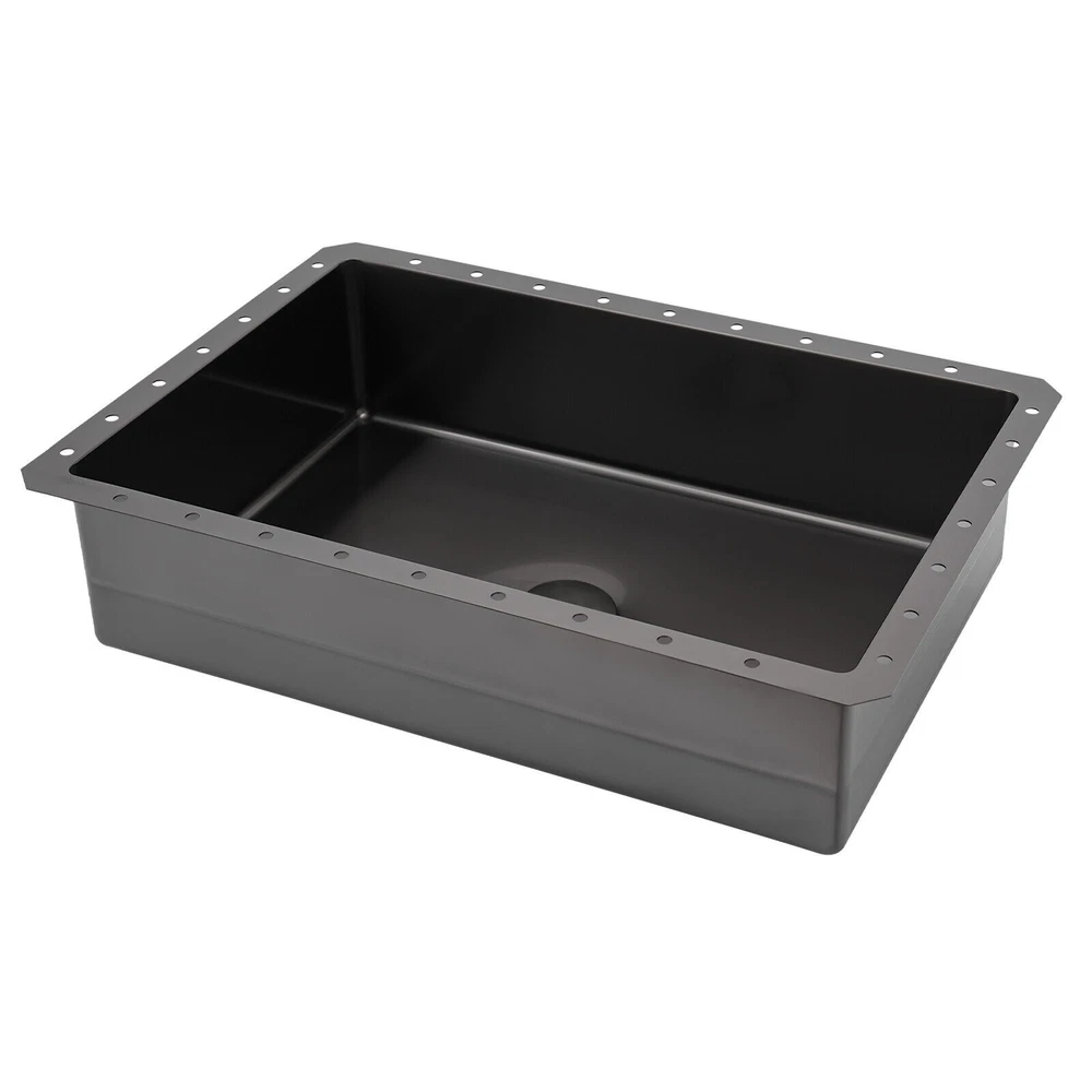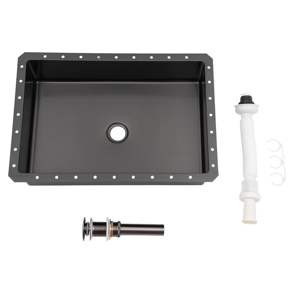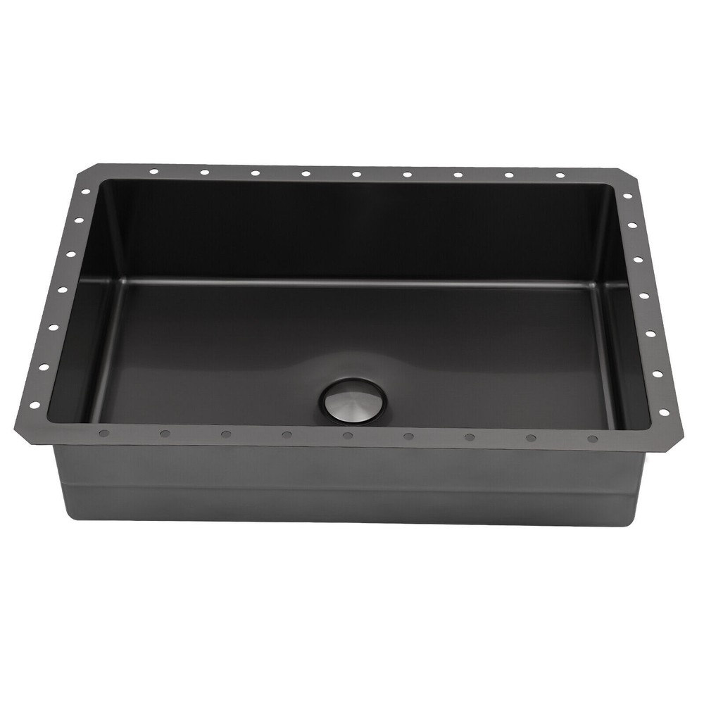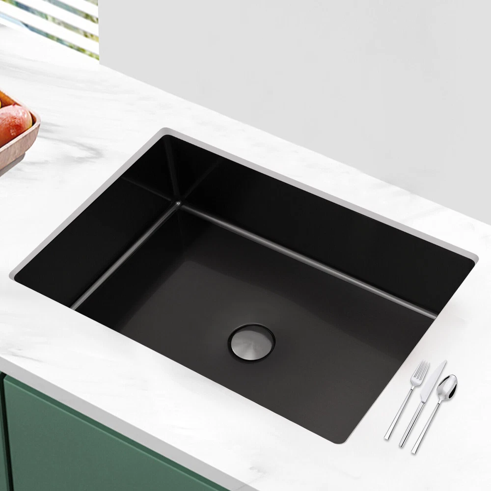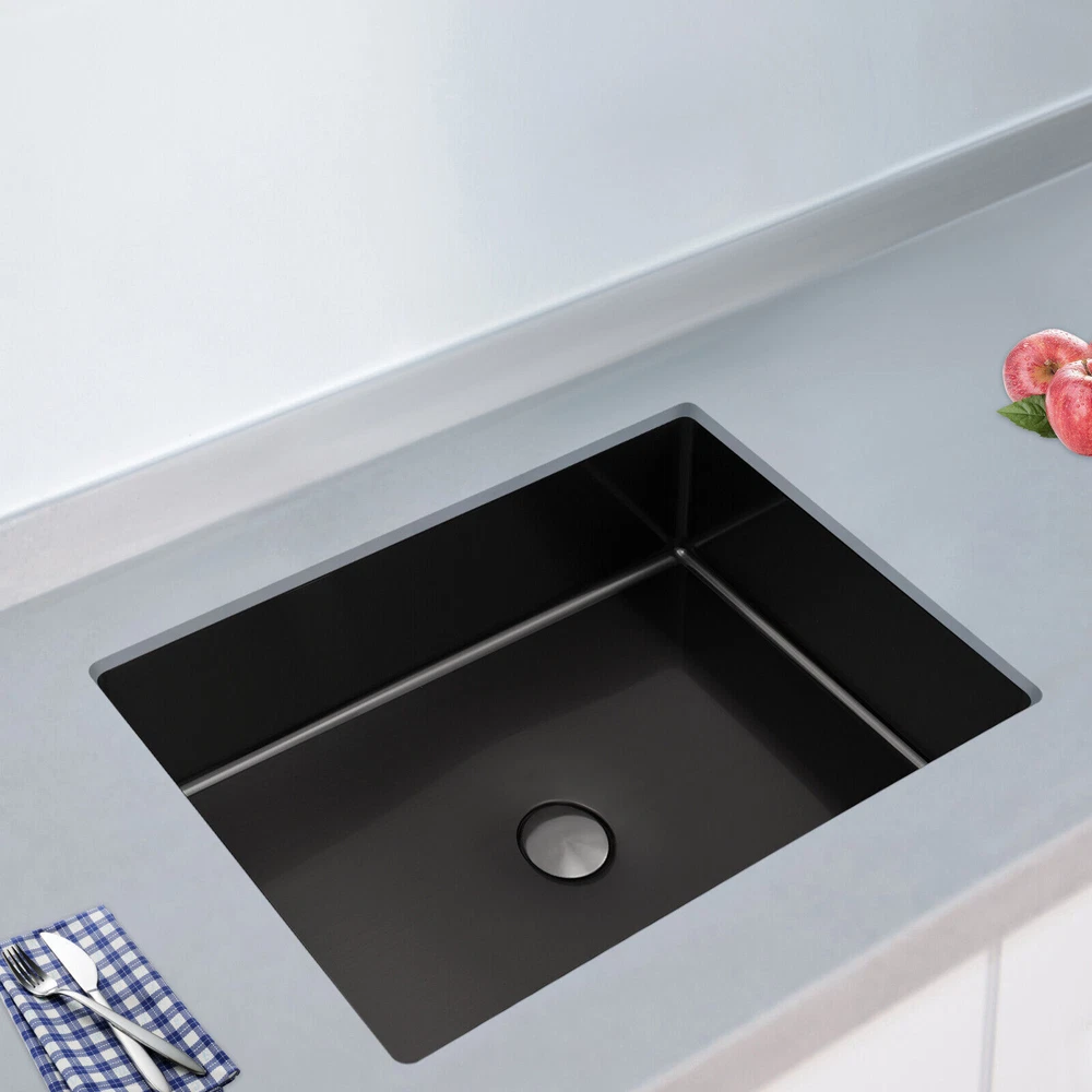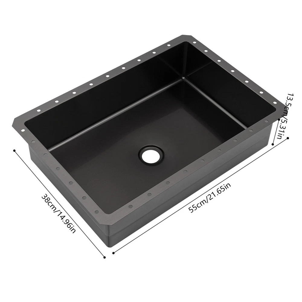 Bathroom Sink Single Bowl Undermount Bathroom Wash Sink Rectangular Sink 23L Description We sincerely recommend this washbasin that combines aesthetic design and practical function, which is not only an essential companion for daily cleaning but also an art piece that enhances the style of the bathroom space. It adopts a minimalist design concept, connecting the basin with the countertop, avoiding dirt hiding, and presenting a natural artistic aesthetic. Act now to give your bathroom space a new look! Key Features Sturdy and Durable: The product is made of high-quality 304 stainless steel and ABS, using brushed and polished technology, making this product wear-resistant, corrosion-resistant, sturdy, and less prone to rusting, so it can be used in wet environments. Large Capacity: This sink with a capacity of up to around 6.07 Gal will allow you to wash your hands and towels without splashing and without restricting your movement. Thoughtful Design: The pop-up drain allows you to drain the water with a gentle press, making it very convenient and aesthetically pleasing. It also cuts down on odors for you by keeping dirt out and not discharging into the drain. Space-saving: The small footprint (21.65*14.96*5.31 inches) and built-in design allow it to not take up any extra space and blend in with the countertop. Effortless Clean: Thanks to its smooth and watertight surface, you are allowed to easily remove dust from the surface of the product with a towel. Stylish Appearance: The sleek black finish makes it look modern and stylish to blend in with different decor styles and adds a touch of decor to your space. Ideal Gift: The minimalist appearance and good practicality make it a great gift for parents, friends, and colleagues on birthdays and housewarming. Protective Packaging: The foam provides comprehensive protection for products to ensure that it is fully delivered to you to the greatest extent possible. Details Sound-absorbing Mat: It absorbs noise from water falling and rubbish disposal. Round Corners: They prevent accidental cuts and take care of your safety in use. Pre-drilled Holes: They are easy for you to install directly without having to drill additional holes. Application This product is suitable for bathrooms, washrooms, hotels, restaurants, laundries, shops, utility rooms, laboratories, canteens, cafeterias, warehouses, and so on. Specifications Style: Modern Shape: Rectangular Color: Black Material: 304 Stainless Steel, ABS Surface Treatment: Brushed, Polished Mount Type: Undermount Assembly Required: Yes Drain Location: Center Faucet & Overflow Included: No Drain Assembly Included: Yes Drain Type: Pop-Up Capacity: About 23L/ 6.07 Gal Thickness: 1.2mm/ 0.05 in Drainage Calibre: 45mm/ 1.77 in Recommended Opening Size: 52.5*35.5cm/ 20.67*13.98 in Length of Water Pipe before Stretching: 44.5cm/ 17.52 in Length of Water Pipe after Stretching: 87.5cm/ 34.45 in Length inside the Frame: 50cm/ 19.68 in Product Size: 55*38*13.5cm/ 21.65*14.96*5.31 in Package Size: 62*40*18.5cm/ 24.41*15.75*7.28 in Gross Weight: 5.5kg/ 12.12 lbs Package Included 1* Washbasin 1* Drain Pipe 1* Pop-Up Drainer Other Accessories for Installation Notes Please note that you should double-check the size and specification you require before purchasing. Please note that this package does not include the faucet. Please note that to prolong the life of the sink, do not scratch the surface with sharp objects. Please do not use strong acids or alkalis to clean items in the sink, and do not put hard objects or rusty metal in contact with the sink for a long time, keep the sink clean by cleaning the sink and drying it with a rag after each use. Please allow the slight color difference caused by the shooting light and 1-3cm error due to manual measurement, and make sure you do not mind before you order. Payment Delivery details Terms of sales About us Contact us Payment We accept ebay payment 。 Fees such as import duties, taxes are not included in the item price or shipping costs. These charges are the buyer's responsibility. Delivery details Shipping: 2-9 working days to: USA Terms of sales We maintain high standards of excellence and strive for hundred percent customer satisfaction. Feedback is very important to us. We hope that you contact us immediately before you give neutral or negative feedback, so that we can address your concerns. It is impossible to address issues if we do not know about them! About us Your satis faction is our ultimate goal. We work hard to earn your trust and future business. Our certified technicians have tested each item before shipping. The unit comes with 1 year limited warranty on all manufacturing defects. a) If you receive a defective item, you may return it or ask for a discount. Please contact us within 14 days after you receive the package. b) What you returned must be intact and in its original packaging as re? u. Customer is responsible for shipping costs of the returned item. c) We will cover the cost of shipping back t with the shipping rate indicated in the registration page. We will send you a new unit or refund the full payment you paid. Thank you. Contact us Business Hour Business Hour: Monday To Friday: 8:30 AM to 5:00 PM (Beijing China time) Due to time zones, our reply to your questions may not be immediately. But within above working time, we will reply your email within 24 hours. If it's non-workdays, please kindly be patient and wait till Monday. Please contact us with ebay message. Please feel free to contact us if you have any questions. Monday To Friday: 8:30 AM to 5:00 PM (Beijing China time) Due to time zones, our reply to your questions may not be immediately. But within above working time, we will reply your email within 24 hours. If it's non-workdays, please kindly be patient and wait till Monday. Please contact us with ebay message. Please feel free to contact us if you have any questions. Features: Fast shipping from US Warehouse Brand Unbranded Type Und