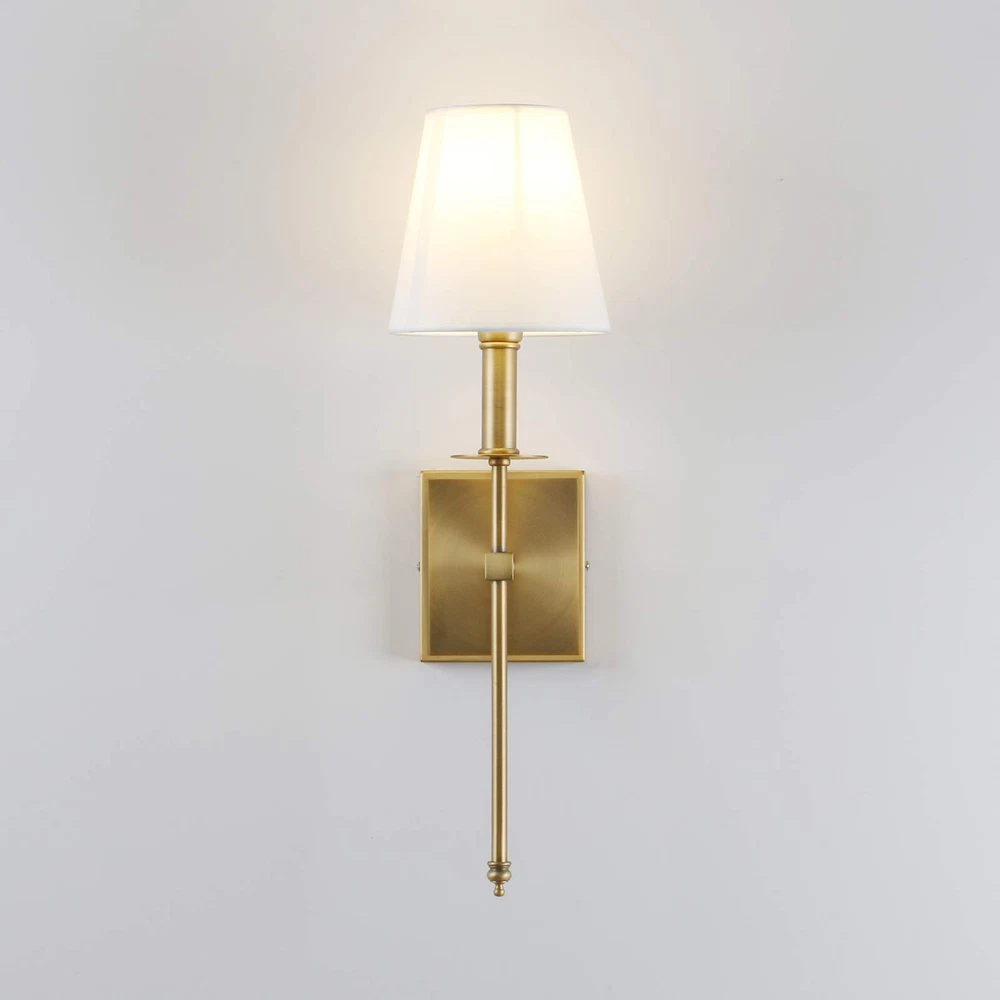 [Multipe Bulb Type] wall sconce is with E26 base LED; Compact Fluorescent (CFL); Halogen; and Incandescent. The lamp socket is of E26 base, 60W maximum, and standard 110-120 Voltage. Support dimming: need to match dimmable bulbs and dimmable remotes. Bulb not included. [Basic Product Demension] Fabric wall sconce is 8.2 inches in width and 21.3 inches in height. In addition, the canopy of the mount plate is 4.72 inches, and can be cuvred to US general octagonal, round or square junction/ electrical box. If you have any question about size before purchasing, please us at any your available time. [Widely Application] Featured a simply elegant arm and a white fabric shade in mid-century style, bathroom sconce is infusing soften lighting in all directions also is a beautiful artmestic decoration for all kinds of places, like living room, dining room, kitchen, farmhouse, reading room, hallway, stairwell, bedside, bedroom, reading room and office. [Easy Installation] Hardwired installation required. Sconce light has a clear installation manual and all necessary accessories included for quick and easy installation. Warm note: ensure the power is cut off before installing the brass farmhouse sconce. [12-month ] Lighting offers year quality gurantee against any defects in materials and workmanship. can be applied for any shade damaged or missing parts upon open box.