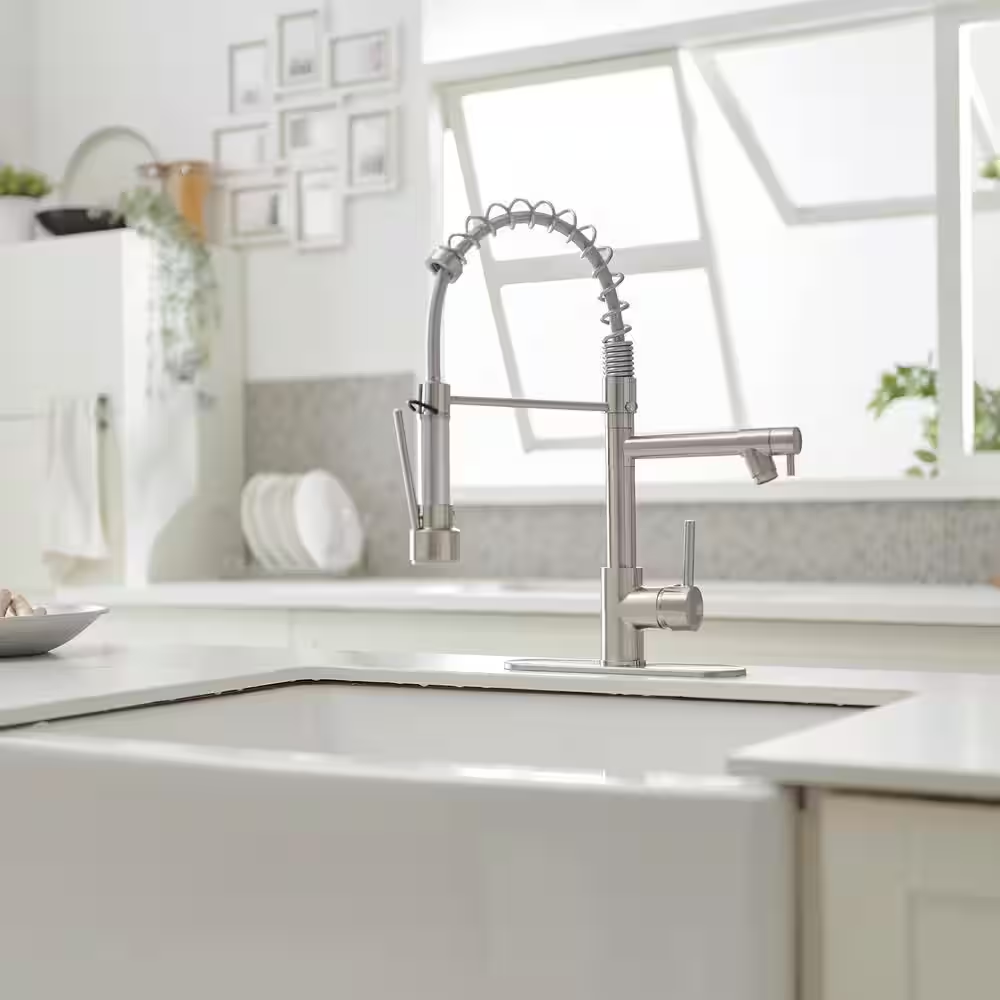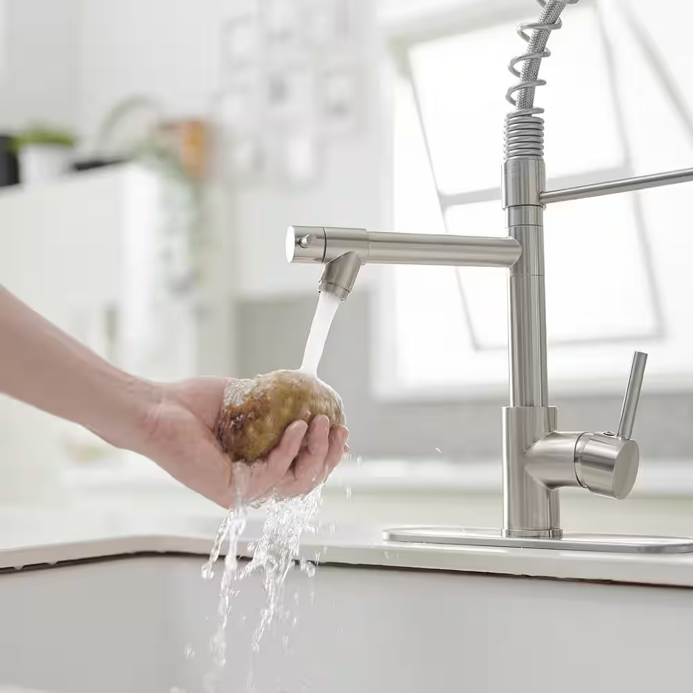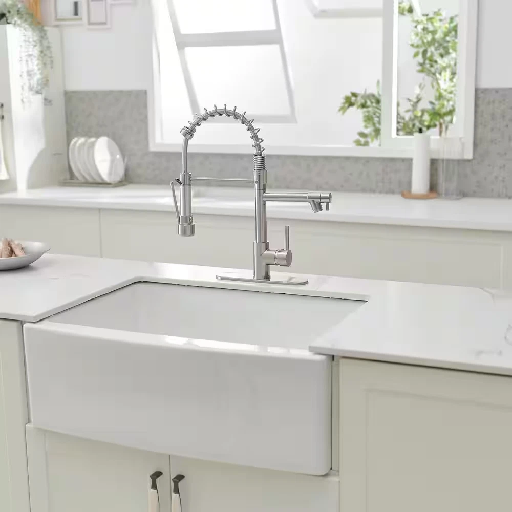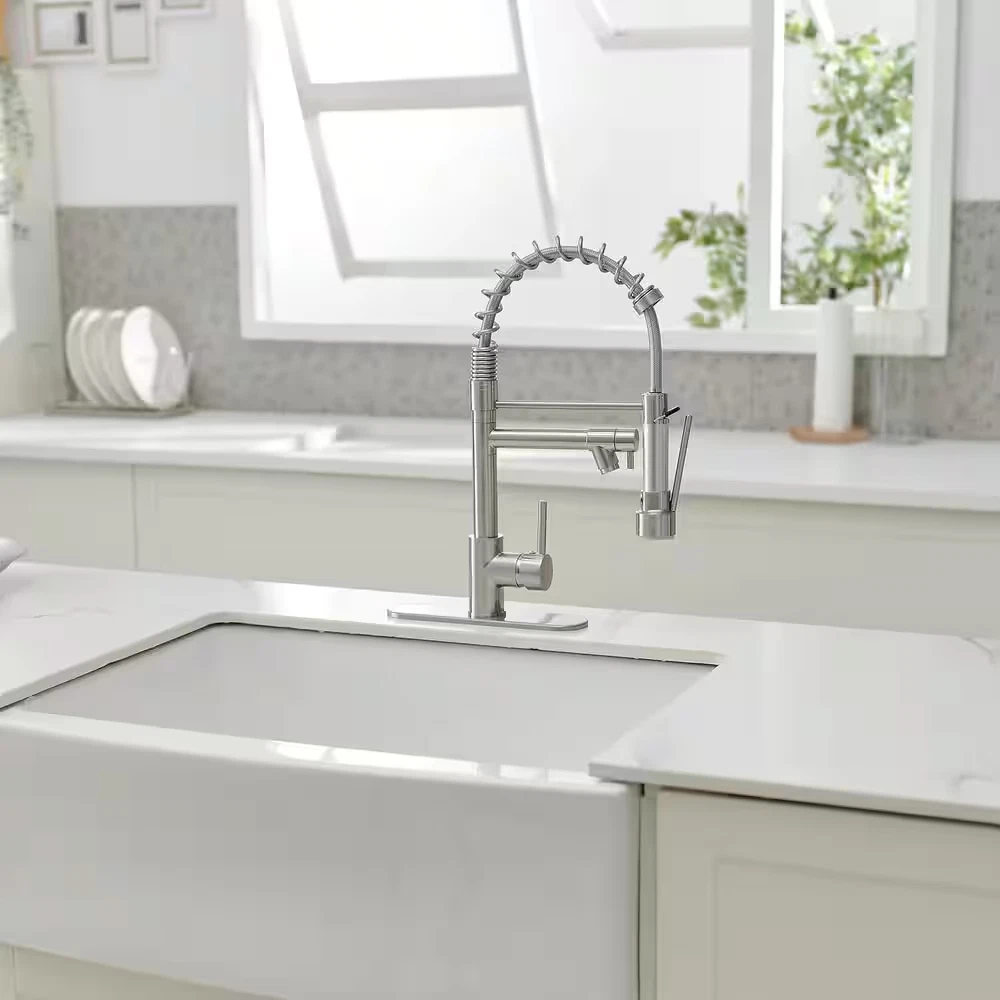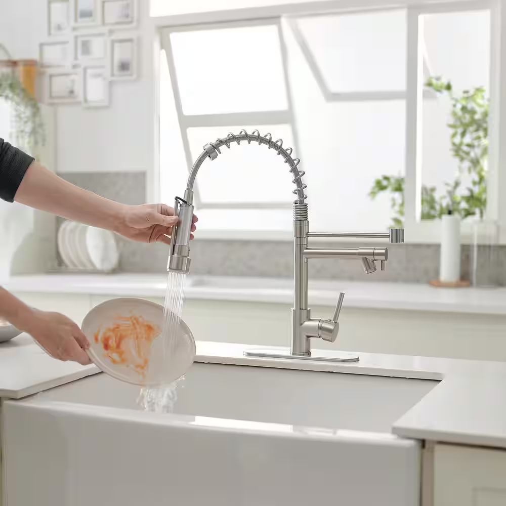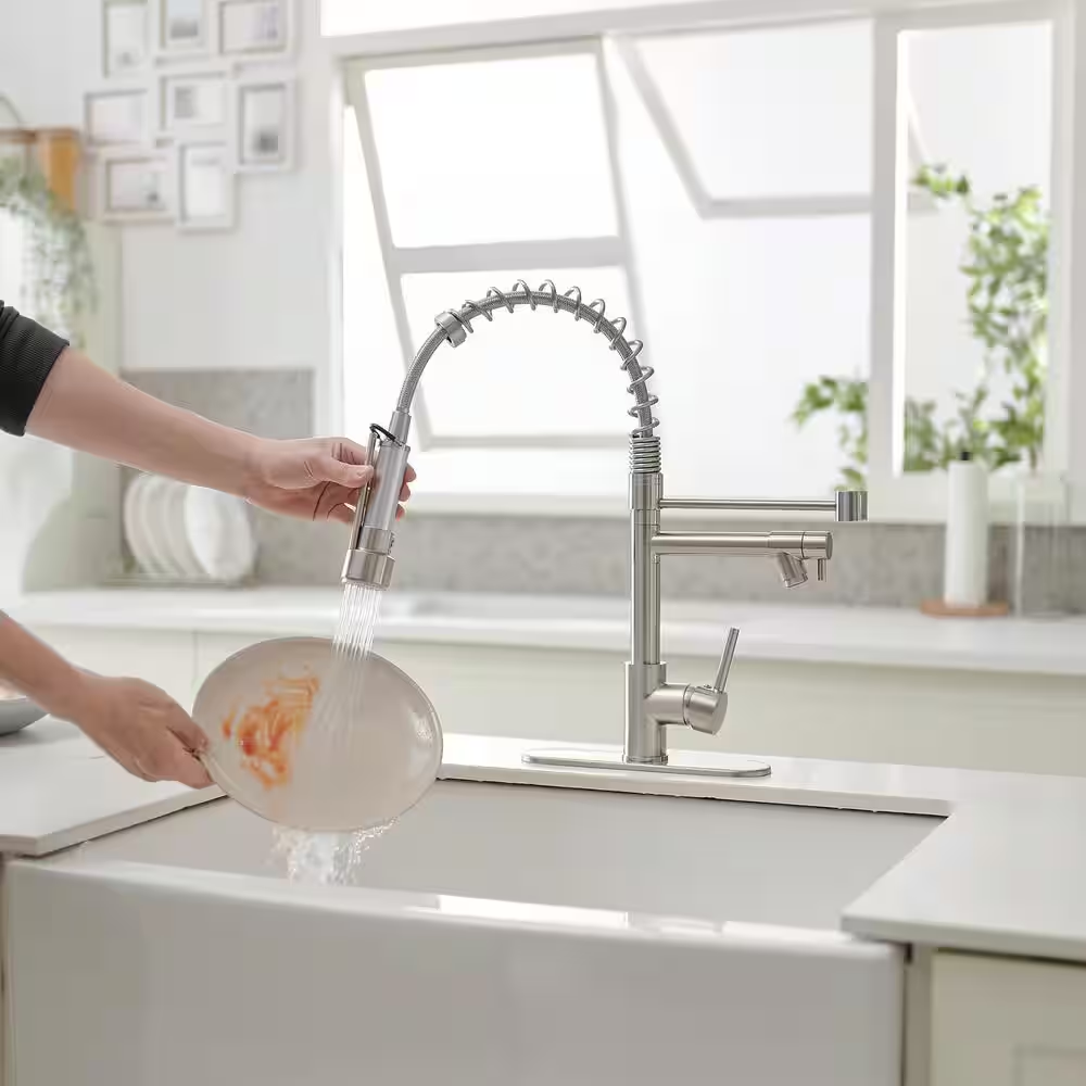 Fast Shipping On All Items 30 Days Money Guarantee Customer Support Excellent Service 100% Satisfaction Satisfaction Guaranteed Single-Handle Pull-Down Sprayer 2 Spray High Arc Kitchen Faucet With Deck Plate in Brushed Nickel Specification Cartridge Valve Type Ceramic Disc Faucets Color Family Nickel Color/Finish Brushed Nickel Commercial / Residential Commercial Faucet Height (in) 18.4 in Faucet Hole Fit 3 Hole,Single Hole Faucet Hole Spacing Widespread Faucet Type Pull Down Features Advanced Spray,Built In Water Filter Spout,Gooseneck,Spot Resistant Finish Family Brushed Flow rate (gallons per minute) 1.8 Included Components All Mounting Hardware,Handles,Sprayer head,Supply Lines Material Brass Mount Location Deck Mount Number of Faucet Handles Single Handle Returnable 90-Day Sensor Activation No Sensor Spout Swivel Type 180 Degree Spout Swivel Valve material Ceramic Certifications and Listings ANSI Certified,IAPMO Certified,NSF Certified Manufacturer Warranty Limited Lifetime Connection size (in) 3/8 In. Extended Hose Length (in) 70.9 Spout Height (in) 4.65 Spout Reach (in) 8.26 in 70.9 inches x 18.4 inches. Weight: 0.0 grams Item Description Single-hole pull down kitchen faucet installation Features premium corrosion resistant finish and dual mode sprayer Simple designs and high quality great for any kitchen High quality home appliances should be available to everyone.We want to make it possible to bring your home the most innovative appliances.We create home appliances that are hassle-free: easy to install, feature-filled, and future-proof. HEAVY DUTY DESIGN: BWE kitchen sink faucets are designed to durably handle the rigors of a busy kitchen. Our pull out kitchen faucet features a high quality, sturdy all-metal body and handle,rust-resistant finishing, heavy duty spring,and a superior-grade ceramic cartridge that can withstand a 500,000+ close and open test. ENJOY GREAT FUNCTIONALITY: With a one-function kitchen faucet sprayer and a separate pot filler spout, this pull out faucet allows you to handle all types of tasks. The spray head and stream spout can swivel around 360 degrees for full sink access, and the pre rinse faucet ensures high pressure while still saving on water EASY TO USE: We've equipped this pull out spray kitchen faucet with a single handle that conveniently controls both water volume and temperature. You'll love the smooth swivel action, stress-free pull down, and secure docking of the faucet pull out sprayer when not in use. The ingenuity and convenience of the sprayer lock design allows the you to utilize one hand rinsing while when you wash. EASY TO OPERATE: High arc 360 degree swivel spout for full sink access , pull down sprayer to avoid splashing . Single handle, easy control of hot and cold water and flow volume EASY TO CLEAN : Brushed nickel finish & Surface transition design Prevent dirty / water stain from sticking to faucet surface, Cleaning faucet by cloth is enough in Daily Use. Pull Down Sprayer & 360°Rotation: Faucet pull down hose offers flexible water delivery and hose retracts with ease. The 360° rotatable and pull-out head can easily reach every angle of your sink. SPRUCE UP YOUR KITCHEN: Exuding a contemporary industrial feel, our single lever kitchen faucet is a great addition to your home. The mix of industrial aesthetics and eye-catching finish makes this high arc faucet an impressive focal point of your kitchen Add filter screen inside the hose to eliminate hose blockage About us We offer the best prices around on high quality products. Our E-store includes media such as books, movies, music and games while offering electronics, toys, sporting apparel, clothing, tools, general home, garden items and more. Shipping We are always working hard to ensure your package arrives as soon as possible. Please understand that some factors like weather, high postal traffic, and the performance of shipping companies are outside of our control. We offer free shipping to the lower 48 states and ship within 2-3 business days of payment, usually sooner. We do not accept P.O. Boxes. Please provide a physical address. For shipping outside of the continental USA, we only use eBay's Global Shipping Program.The item is shipped to KY and then sent to the rest of the world. International customers are responsible for all duties and taxes. Continue to check out to calculate costs for shipping the item to your country. Messages regarding eBay's Global Shipping Program MUST be directed at eBay EXCLUSIVELY. Returns We offer a 30-Day Return Policy on items in which you are not completely satisfied with. You have the option of a full-refund or an exchange of the item. No returns are available on items shipped outside of the USA Satisfaction We try over very best to make sure every customer is completely satisfied. If there's a problem, message us! We're happy to help. Payment Options Shop With Confidence
