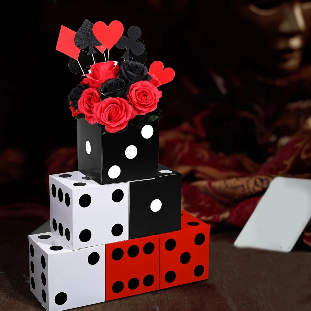 Sinmoe 6 Pcs Casino Dice Favor Boxes Bulk 7 x 7 x 7 Inch Casino Themed Party Supplies Night Las Vegas Party Decoration Three Dimensional Dice Decor for New Year Centerpieces Game(Multicolored) Features: Novelty presents: You can send the casino dice boxes to your mates, siblings and neighbors who want to hold game night parties or always play casino themed games, which can help them to decorate their party scene and make for a great accent around their house. Nice craft props: People can use cardboard dice boxes to make some creative crafts with their family members and mates, which can not only inspire their imagination and operational ability, but can improve their relationship. Specifications: Material: thick cardboard Color: black, white, red Size: about 7 x 7 x 7 inches Package includes: 6 x Dice favor boxes Notes: Manual measurement, please allow slight errors on size. The color may exist a slight difference due to different screen displays. A Variety of Display: the casino dice party favor box can be stacked together as table decorations or game props for casino theme party decorations; You can also put some beautiful flowers or other small things on it as special game night las vegas party supplies; Notes: without flower and accessory Proper Sizes: the casino favor boxes measure about 7 x 7 x 7 inches, are appropriate for you to put in every corner of your home or room, making these places more attractive and adding a sense of fun; Please check the size before placing the order Casino Theme Party Decorations: the package comes with 6 pieces of casino dice goodie boxes, which do not include the internal products; The quantity is enough for you to make some casino party table decorations, meeting your various decorative demands Wide Decoration Scene: our casino dice card box is ideal for many occasions, such as las vegas party, casino themed parties, Birthday parties, festivals, holidays, carnivals and so on, which is a fabulous addition to the party celebration Quality and Serviceable: made of reliable thick cardboard, the casino theme party decorations are lightweight and not easy to break or fade, easy for you to assemble and disassemble them, reusable and long lasting, can serve you for a long time Shipping from the USA All of our products are shipped from the USA, ensuring quick delivery to your destination. Payment We offer the following payment methods: PayPal, credit card, bank transfer, and eBay's secure payment system. Free Shipping & Free Returns Shipping within the USA is FREE. Additionally, any return is absolutely free for you. Risk-Free Purchase You have the option to return an item within 30 days without any justification. We cover the return shipping costs! Fast Shipping We ship immediately upon receipt of payment. Generally, the package is delivered within 2-3 days in the USA. If it takes longer, we will contact you. Quality and Costs Made in Europe, USA, China No customs fees or additional charges Total satisfaction guarantee Invoice with declared VAT available upon request in .pdf format Feedback Your feedback is very important to us. After you pay for your purchase, you will automatically receive positive feedback from us.