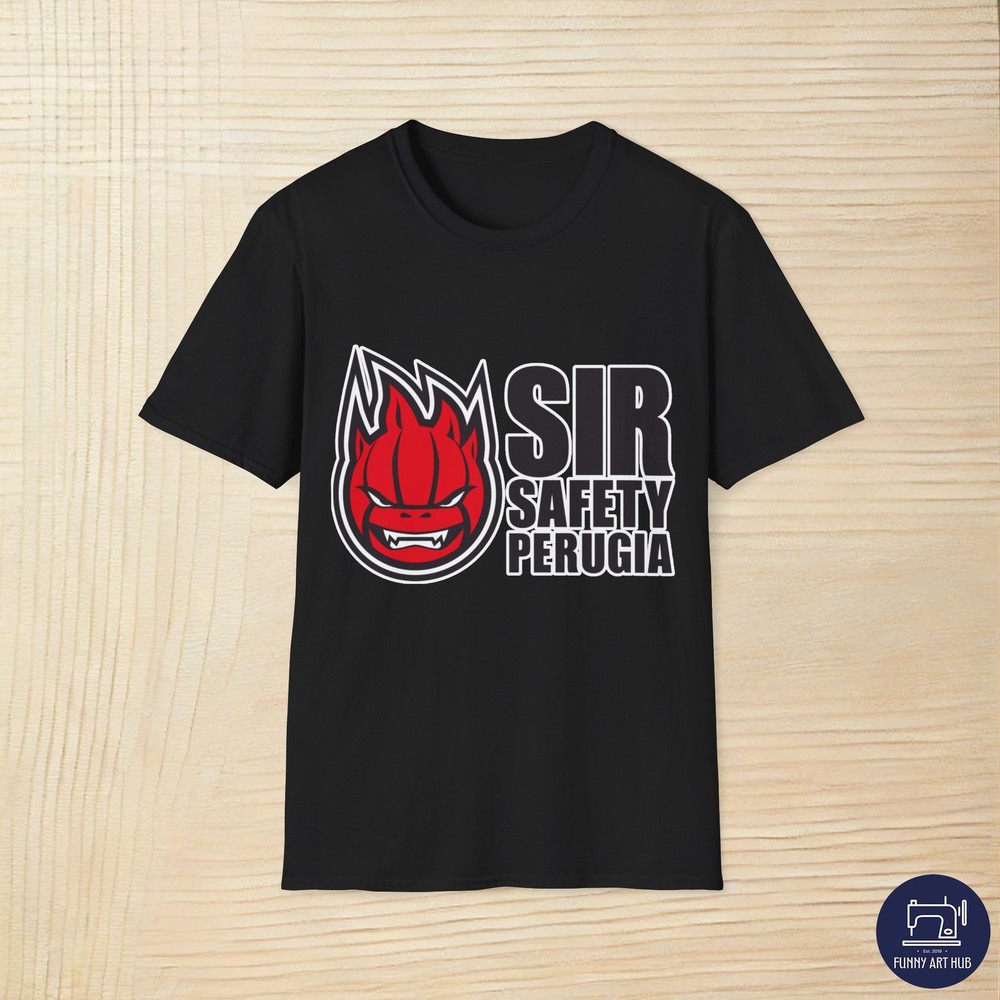 Sir Safety Perugia Volleyball Team Logo is a funny and cool gift for men, women and kids who love Sir Safety Perugia, Volleyball, Team, Sports, Champions, Competitive, Club, Tradition, Pride, Spirit, Legacy, Fans, Game, Custom, Popular, Elite, Signature, Graphic, Icon, Design, Symbol, Branding, Logo PRODUCT DESCRIPTION The unisex soft-style t-shirt puts a new spin on casual comfort. Made from very soft materials, this tee is 100% cotton for solid colors. Heather colors and sports grey include polyester. The shoulders have twill tape for improved durability. There are no side seams. The collar is made with ribbed knitting to prevent curling damage. .: Made with 100% ring-spun cotton, a lightweight fabric (4.5 oz/yd² (153 g/m²)), this unisex t-shirt feels like a bliss to wear all year round. .: The classic fit with the crew neckline deliver a clean, versatile style that can match any occasion, whether it's formal or semi-formal. .: All shirts feature a pearlized, tear-away label for total wearing comfort. .: Made using ethically grown and harvested US cotton. Gildan is also a proud member of the US Cotton Trust Protocol ensuring ethical and sustainable means of production. This blank tee is certified by Oeko-Tex for safety and quality assurance. .: Fabric blends: Heather colors - 35% ring-spun cotton, 65% polyester; Sport Grey and Antique colors - 90% cotton, 10% polyester, Graphite Heather - 50% ring-spun cotton, 50% polyester SIZE GUIDE Imperial S M L XL 2XL 3XL Width, in 18.00 20.00 22.00 24.00 26.00 28.00 Length, in 28.00 29.00 30.00 31.00 32.00 33.00 Sleeve length, in 8.23 8.50 8.74 9.02 9.25 9.49 Size tolerance, in 1.50 1.50 1.50 1.50 1.50 1.50 Metric S M L XL 2XL 3XL Width, cm 45.72 50.80 55.88 60.96 66.04 71.12 Length, cm 71.12 73.66 76.20 78.74 81.28 83.82 Sleeve length, cm 20.90 21.60 22.20 22.90 23.50 24.10 Size tolerance, cm 3.81 3.81 3.81 3.81 3.81 3.81