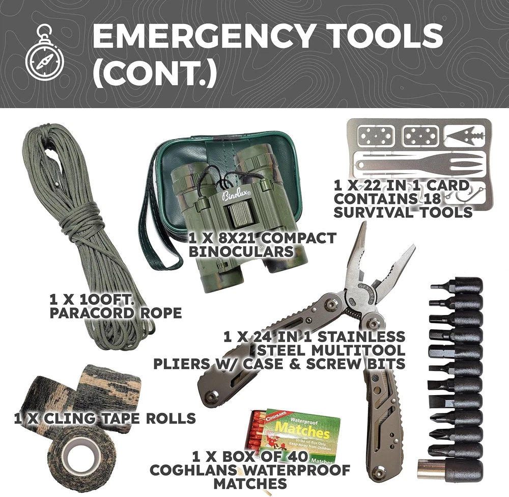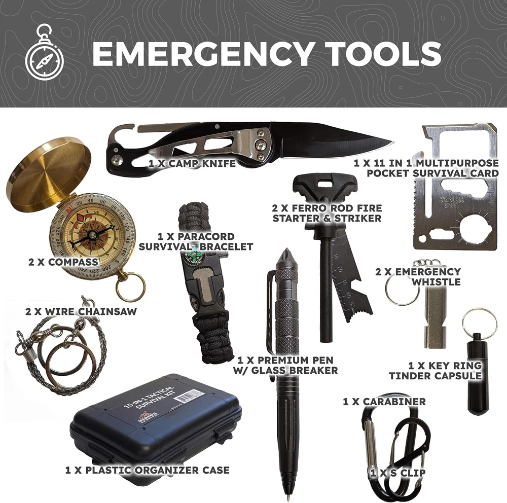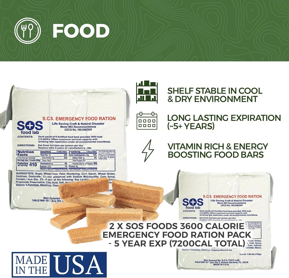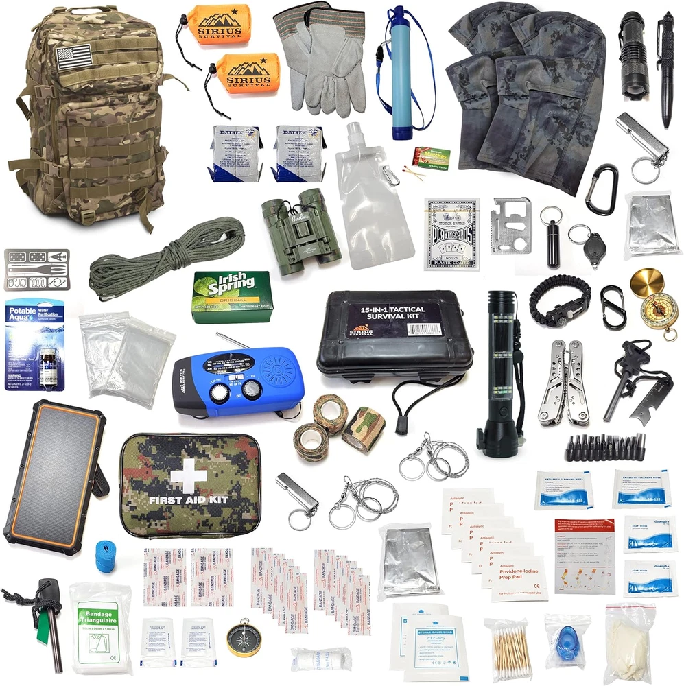 Store New Arrivals Add to Favorite View Feedback Contact Sirius: Pre-Packed Bug Out Bag - 72 Hour Kit for 2 People - Bugout Backpack Survival Kit - Premium 50L Go Bag Tactical Backpack - Essential Bug Out Gear - Upgraded Survival Backpack Description Part Number 50BOB01-CMO Item dimensions L x W x H 20 x 14 x 6 inches Item Dimensions LxWxH 20 x 14 x 6 inches Brand Name Sirius Survival Color Camo Brand Sirius Survival Material 900D Oxford Warranty Description 90 Days Package Weight 16 Pounds Item Weight 13.5 Pounds Manufacturer Sirius Survival Suggested Users unisex-adult Size 50 Liters Number of Items 175 Model Name Emergency Survival Kit Included Components function(f) {var _np=(window.P._namespace("DetailPageProductOverviewTemplatesJava"));if(_np.guardFatal){_np.guardFatal(f)(_np);}else{f(_np);}}(function(P) { P.when('A').execute(function(A){ A.on('a:truncate:po-attribute-truncate-4:updated', function(data) { var isTruncated = !data.truncateInstance.getIfTextFits(); var seeMoreElement = document.getElementById('po-attribute-see-more-id-4'); if(seeMoreElement) { seeMoreElement.style.display = isTruncated ? '' : 'none'; } }) }); })); Backpack, First Aid Kit, Survival Tool Kit, Battery Bank, Compass, Bivvy Bags, Weather Radio, Emergency Food, Waterstraw, Paracord See more Item Package Dimensions L x W x H 20 x 14 x 6 inches Number of Pieces 175 PEACE OF MIND IN A BACKPACK: Will you be ready the next time disaster strikes? Know you and your loved ones will be with this bugout backpack loaded with bug out bag supplies. It’s pre-packed and designed for any situation, ready to grab and go at a moment’s notice. Be prepared for: Hurricanes, Earthquakes, Fires, Floods, Tornados, Zombies, Aliens, etc. ULTIMATE QUALITY PREMIUM GEAR: We use a high density 900D Oxford 50L tactical backpack for a reason, it’s the most important part. Extremely durable, water resistant, high utility with comfortable padded back and shoulder straps. Our Food is SOS Labs’s 100% US Made food rations that last. UNMATCHED VALUE & CONVENIENCE: Save yourself time & money by letting our expertise do the work for you. You certainly could build your own bag, but how long until it’s ready? Do you have a bug out list started? This kit comes with all bug out bag essentials & more, meaning you’re buying in bulk. This lets us pass significant savings to you. Try building this kit individually and see for yourself, it’s significantly cheaper to buy this kit. ULTIMATE GEAR COLLECTION: 7200 calories of food rations for 2 people, multiple water filtration means, solar AM/FM/NOAA radio, first aid, shelter & warmth, entertainment, soap, multiple fire starters, paracord, stainless multi-tool, compass, whistle, solar power bank, solar flashlight, gloves, ponchos, bivvys and more. READY ON A MOMENT’S NOTICE: This kit is ready to grab and go as is, but it still has ample room left over for personalization. Pack important documents, cash, medications, clothing & more. Your kit ships with a guide on what else to include & general survival tips & advice. QUALITY YOU CAN TRUST: At Sirius Survival, helping you be prepared is our #1 goal. We’ve been designing and selling survival kits for over 10 years, helping 1000s of customers tackle the unknown. Bug out bag backpack survival kits are our specialty. We’re a small business that stocks everything and build these emergency kits in Buffalo, NY. Product Description No time to research and build a bug out bag yourself? No problem, we have you covered. Designed specifically for those looking for a well-rounded emergency bag, packed full of essential gear that can help you and a partner in a pinch. Shelter, first aid, sustenance, self-defense and any other survival needs you can think of are covered in this kit with more than 175 total pieces, and weighs in at only 15 lbs. Take away the worry of the unknown. You and your family will be prepared for whatever comes your way with a survival bag in hand. Shelter & Comfort 1 50L 900D Premium Expeditionary Tactical Backpack 1 Pair Leather Work Gloves 2 Bivvy Emergency Sleeping Bag 2 All Weather Emergency Poncho 2 Reflective Mylar Thermal Blanket - 82in x 52in 1 Playing Card Deck 1 Irish Spring Soap 2 Balaclava Tactical Face Mask Emergency Food & Water 2 SOS Foods 3600 Calorie Emergency Food Ration Pack - 5 Year Exp (7200cal total) 1 Water Filter Straw w/ Storage Bag, Carabiner & Lanyard 1 Bottle of Potable Aqua Water Purification Tablets – 50 Total Survival Tools & Gear 1 24 in 1 Stainless Steel Multitool Pliers w/ Case & Screw Bits 1 8x21 Compact Binoculars 1 100ft of Paracord & 3 Cling Tape Rolls 1 22 in 1 Card - Contains 18 Survival Tools & 11 in 1 Multipurpose Pocket Survival Card 2 Ferro Rod Fire Starter & Striker, 1 Coghlans Waterproof Matches – Box of 40 2 Compass & 2 Emergency Whistles 2 Wire Chain Saw 1 Paracord Bracelet, Whistle, Compass 1 Premium Pen w/ Glass Breaker 1 S Clip, 1 Carabiner & 1 Key Ring Tinder Capsule Technology, Communication & Lighting 1 DuraHub Solar 10,000 mAH Power Bank w/ USB Ports 1 Emergency Weather Radio - AM/FM/NOAA 1 8 in 1 Driver Defender Solar Flashlight 1 Key Ring LED Light 1 LED Flashlight Medical Supplies 1 First Aid Kit Bag 1 PBT Elastic Bandage 2 Large Adhesive Bandage & 12 Standard Adhesive Bandage 2 Sterile Guaze Pad 2x2 & 4 Antiseptic Cleaning Wipes 2 Cleaning Wipes – Alcohol Free & 6 Povidone-lodine Prep Pad 1 Mouth to Mouth Device & 1 Medical Tips & Information Card 1 Large Triangular Bandage - 38in x 38in x 54in 1 Disposable PVC Gloves - Pair 1 Tourniquets 48 Cotton Swabs ABOUT US We offer the best prices around on high quality products. Our E-store includes media such as books, movies, music and games while offering electronics, toys, sporting apparel, clothing, tools, general home, garden items and more. SHIPPING We are always working hard to ensure your package arrives as soon as possible. Please understand that some factors like weather, high postal traffic, and the performance of