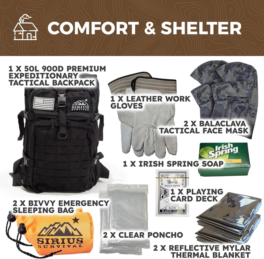 Sirius: Pre-Packed Bug Out Bag - 72 Hour Kit for 2 People - Bugout Backpack Surv
