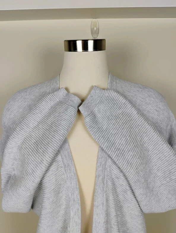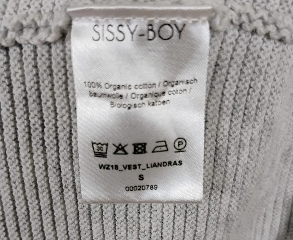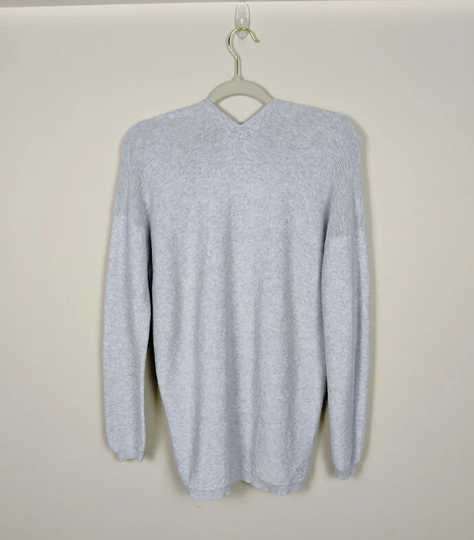 Sissy Boy is a contemporary brand from Belgium. This cardigan is made from organic cotton in a relaxed open front style. It features a unique v-back on the neckline, horizontal ribbed texture, balloon sleeves with banded cuffs. Has dropped shoulders for that slouchy, boyfriend sweater look. Made in Amsterdam. SIZE: Small COLOR: Gray FABRIC CONTENT: 100% Organic Cotton STYLE: Open Front CARE: Machine wash inside out, dry flat CONDITION: Excellent pre-owned condition with no fading, stains, or holes/tears. Please see photos for details. FLAT MEASUREMENTS (approximate) Underarm to Underarm: 22" Shoulder to Hem: 28" Sleeve Length: 21.5" from dropped shoulder seam If you have any questions, please don’t hesitate to ask. Thanks for viewing our listing! Oversized, baggy, sustainable, neutral, warm, capsule