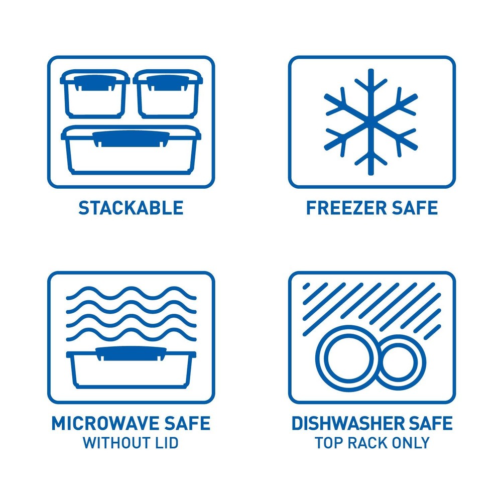 Compact food storage containers ideal for storing berries, nuts, and other snacks Lids with easy-locking clips and extended flexible seal help keep contents fresh Modular stacking design helps save valuable space 100% virgin plastic; phthalate- and BPA-free Set of 3; each with 6.7-ounce/0.2-liter capacity