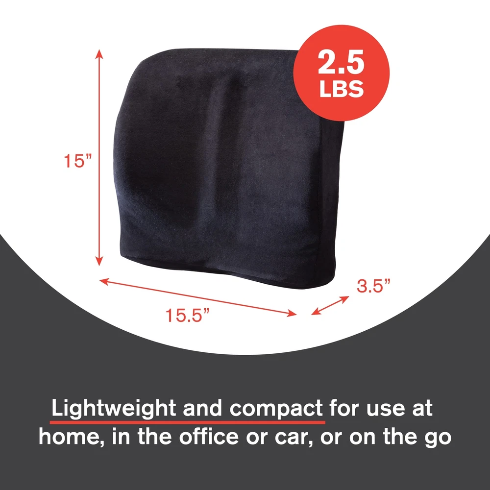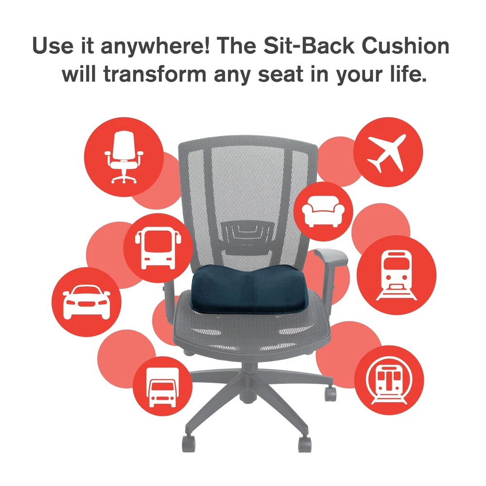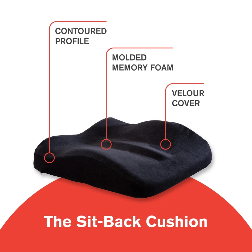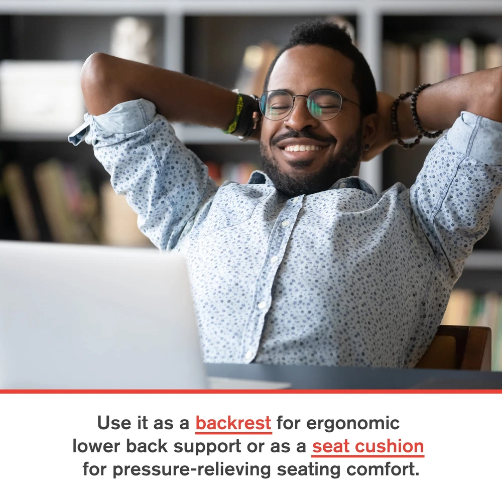 DUAL PURPOSE CUSHION - The Sit-Back Cushion is designed to provide ergonomic support and comfort; it works both as a comfortable seat cushion pillow and as a lower back support pillow; measures 15” L x 15.5” W x 3.5” H MOLDED COMFORT - The thermo-sensitive high density memory foam seat cushion molds to your body for custom comfort, giving you a personalized seat for maximum support UNIQUE DESIGN - The design of the padded seat cushion allows you to select between ergonomic support for the lower back and pressure relieving seating comfort PORTABLE SEAT CUSHION - The Sit Back Cushion is lightweight and compact making it easy to switch between a car seat back support and seat cushion for office chairs ABOUT - A premium brand within HoMedics’ wellness group; brand is a global leader in ergonomics with a passion for developing innovative products that maximize comfort, improve posture, help prevent injury and aid in recovery