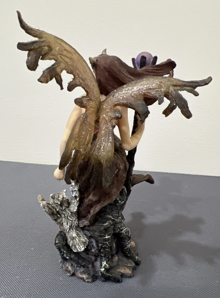 Add a touch of magic to your collection with this enchanting sitting fairy figurine. The fairy is depicted with an owl perched on her shoulder, holding her staff of power. Crafted from durable polyresin, this figurine is perfect for display in any fantasy or mythical collection. The intricate details of the fairy's attire and the owl's plumage make this a true work of art. This fairy figurine is perfect for those who love all things magical and mythical. The weight of the figurine is approximately 1 lb, and it is not handmade or modified in any way. The genre of the figurine is fantasy, and it is sure to be a great addition to any collection. Please see pictures for condition. Selling as is. Please add me to your list of favorite sellers and visit often as we are always adding new items.