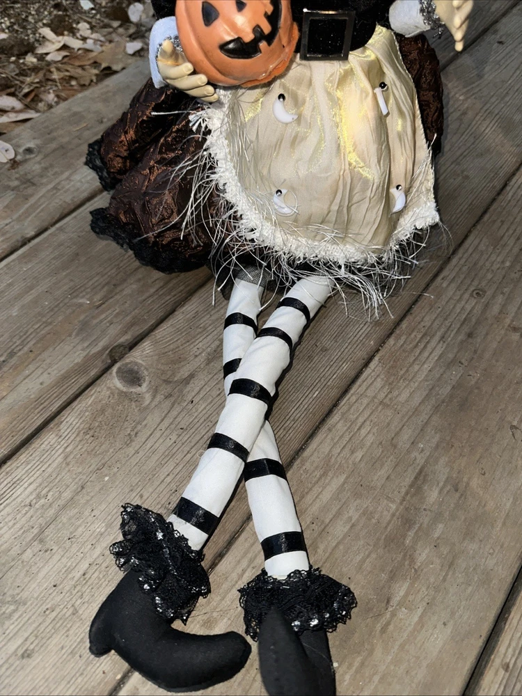 Sitting Halloween Gal Pal Pumpkin Moon Witch w/long Leg 26โ Folk Art Blk/white Adorable Halloween sitting pumpkin moon witch. Black and white dress Please see pictures Thank you for looking ๐