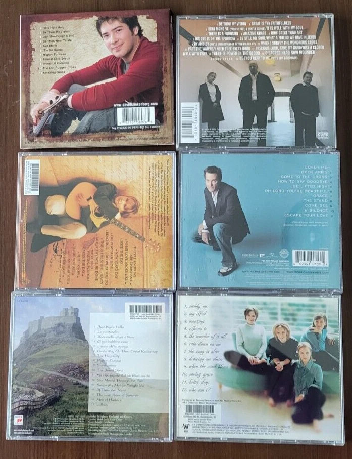 Six Christian Music CDs by Various Artists Legacy .... Hymns of Our Heritage - David Klinkenberg - has cardboard sleeve Greatest Hymns - Selah - Jewel Case Seize the Day - Carolyn Arends - Jewel Case Stand - Michael W Smith - Jewel Case Charlotte Church - Jewel Case Steady On - Point of Grace - Jewel Case 93-year-old selling her collection. Returns accepted if returned in same condition as was received. If purchasing more than one of my listings at the same time, I will ship all items together and issue you a partial refund for the difference in shipping cost paid and the actual shipping cost.