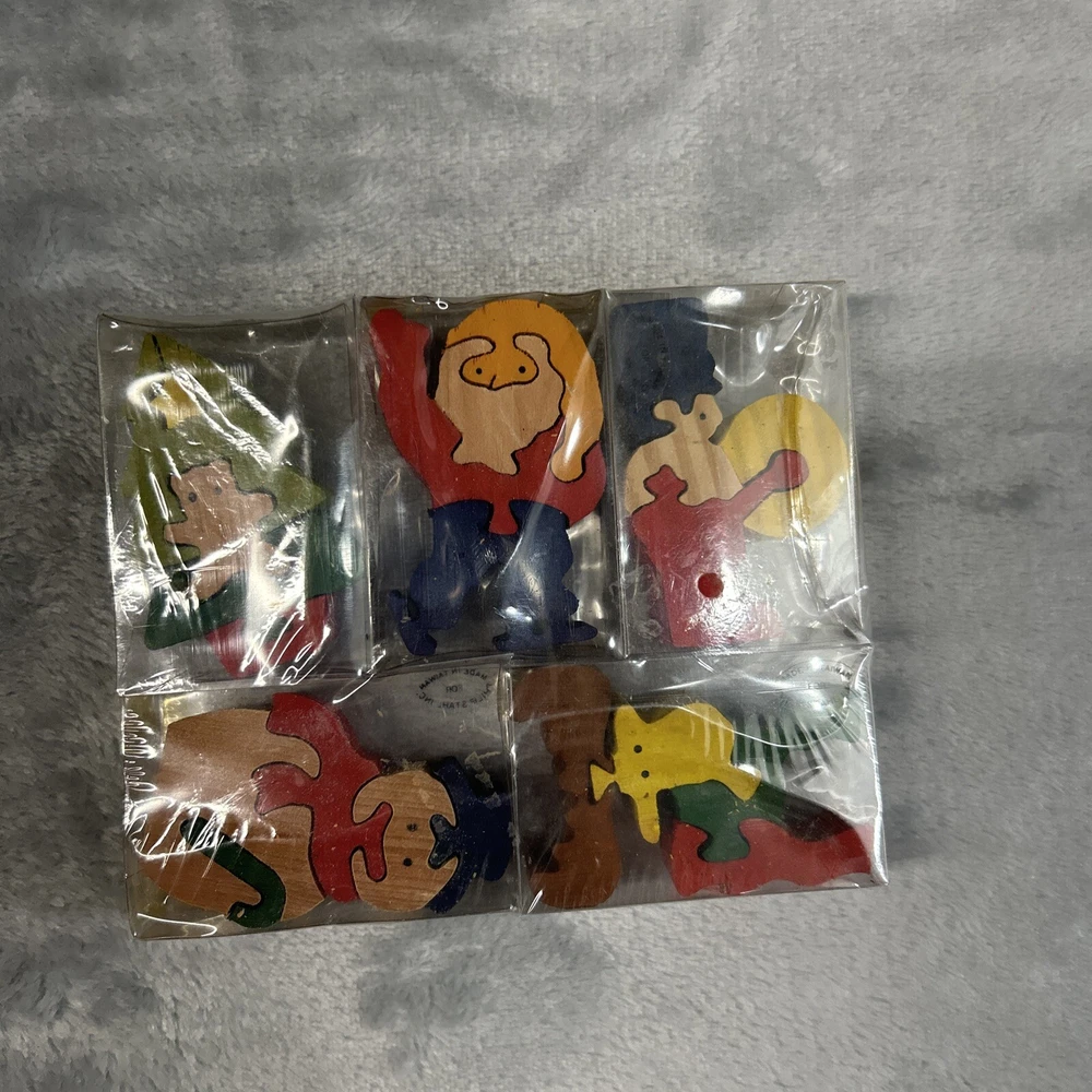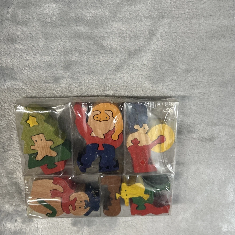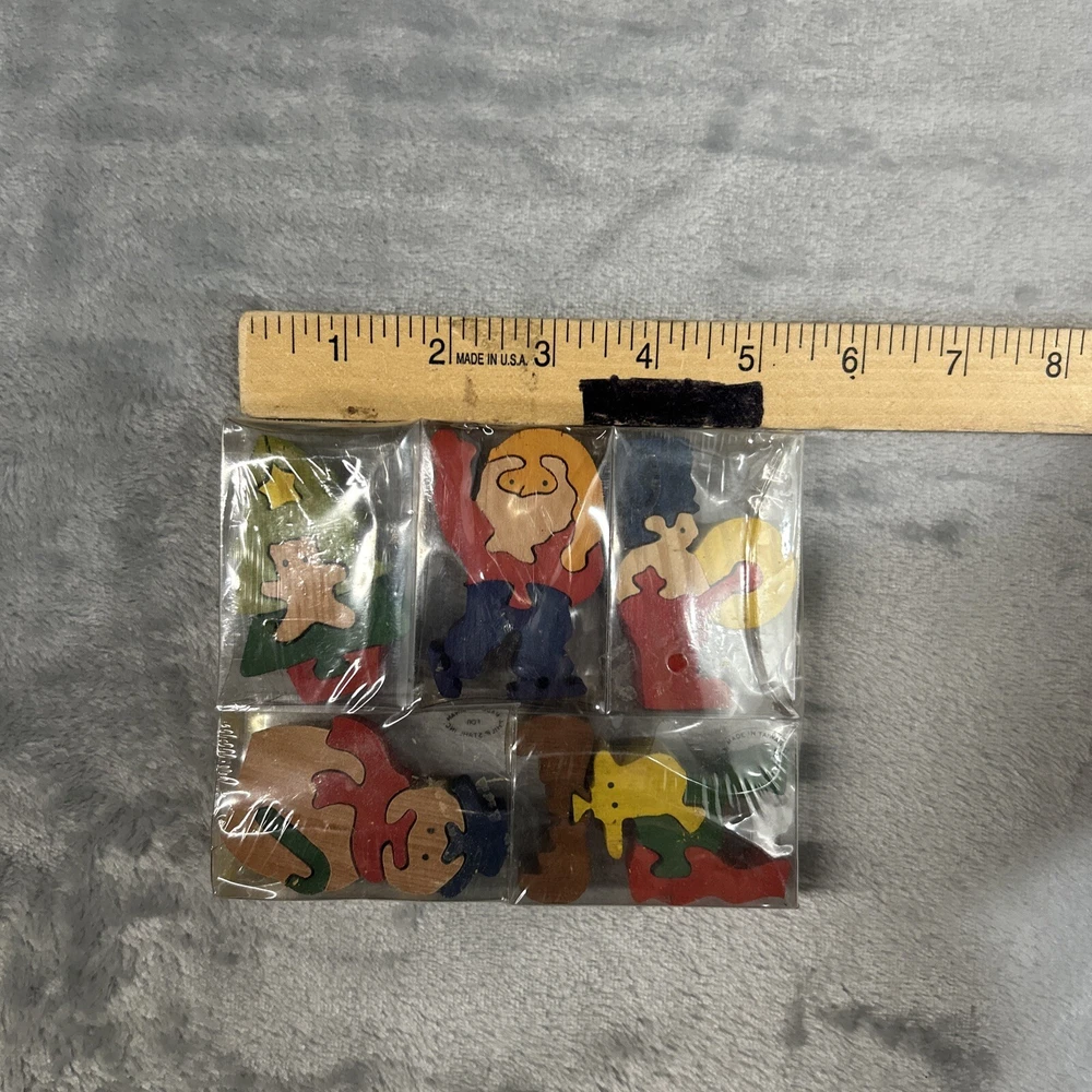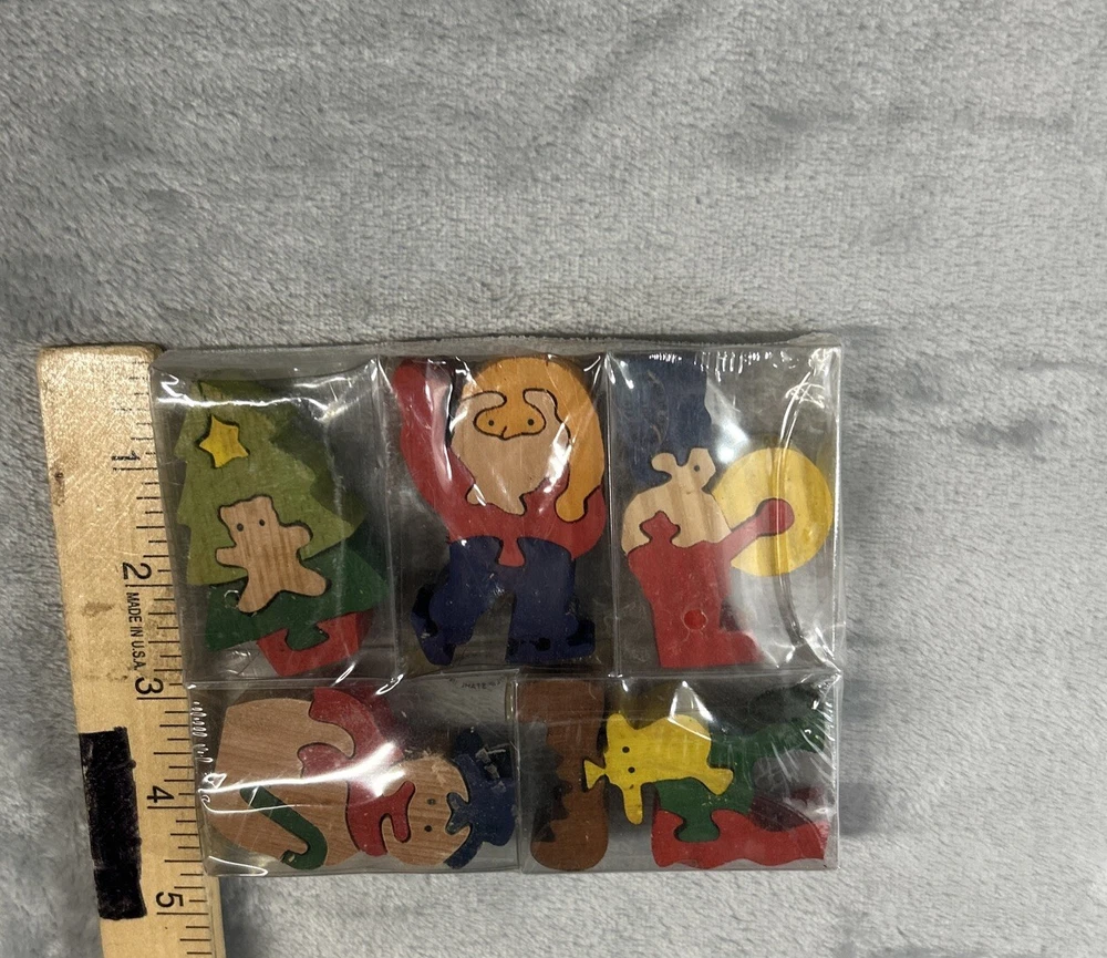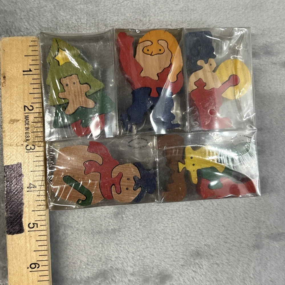 This wooden puzzle set from Philip Stahl is perfect for any Christmas enthusiast. The multi-colored pieces feature various festive designs, all made from wood. Manufactured in Taiwan, this puzzle set is sure to bring hours of entertainment and joy. Whether you're a puzzle collector or just looking for a fun holiday activity, this set is a must-have.