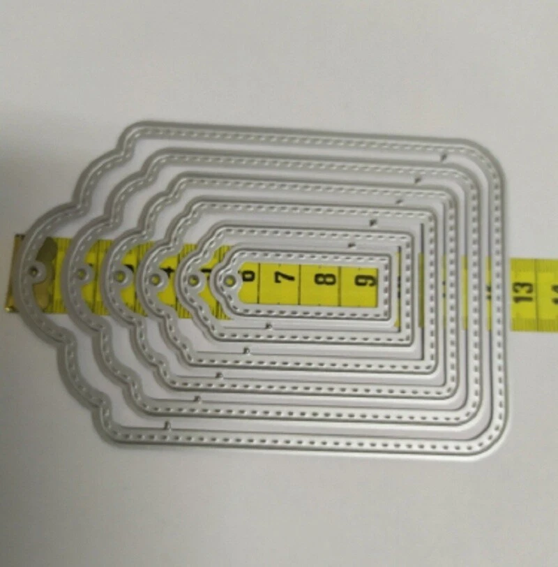 Features: Cut paper fabric and much more High quality thin metal cutting dies made of 100% steel Works in most major brands of die cutting machines Specifications: Color: Light Grey Whole Size:(Approx):8.1*12cm Quantity:1 Pcs/lot Material: Carbon steel Notice: It is fantastic design for your invitations, cards and envelopes. Note 1: Due to different producing batches, there may be 1-2mm deviation for the items. Note 2: Under different lights. on a computer screen. There will be a small difference in color. Please, check the actual product. Six Sets Stitched Tag DIE Cards Craft Dies Scrapbooking Die Embossing Cutting Features: Cut paper fabric and much more High quality thin metal cutting dies made of 100% steel Works in most major brands of die cutting machines Specifications: Color: Light Grey Whole Size:(Approx):8.1*12cm Quantity:1 Pcs/lot Material: Carbon steel Notice: It is fantastic design for your invitations, cards and envelopes. Note 1: Due to different producing batches, there may be 1-2mm deviation for the items. Note 2: Under different lights. on a computer screen. There will be a small difference in color. Please, check the actual product. Payment Shipping Return Policy & Warranty Payment 1. We only accept PayPal, payment system supports Mastercard, Visa, Discover, American Express and eCheck. 2. Please make sure you have a valid PayPal account before bidding. 3. The payment shall be submitted within 7 days after the transaction is completed. If the payment is delayed after 7 days, we have the right to cancel the transaction and re-sell the item you ordered. What’s more, there will be UPI(Unpaid case) in your ebay account. Shipping 1.After the successful payment, packages will be dispatched within 24-48 hours, Weekend (Saturday and Sunday) and Chinese / official holidays. 2. The delivery time is different than the place of the product. Goods in China will be sent by standard mail. And it takes 15-23 business days. 3. Submission of information to the change of your address or success of your payment, your package will be sent to your Paypal address. If you offer an incorrect e-mail address, we are not responsible.Shipping Return Policy & Warranty 1. We guarantee the best product for you. This guarantee starts from your payment time. Refund or replacement are valid for all broken or incorrect products (within 30 days). In this case, there are also no return costs. We can also return your money despite the good or correct products. 2. Customer satisfaction is very important to us. If you are not satisfied, simply contact us via "My Massage" or "Ask Seller Q" before either opening an eBay case / return request or leaving a neutral / nagative rating. We will solve your problem as soon as possible. We are always ready to answer any questions you may have. 3. If you are satisfied with our products, please leave all 5 star ratings behind. Our goal is that you will experience the best customer service. Please help us with the suggestion of the product. A 5 star rating is very important for us. Your support for us always.