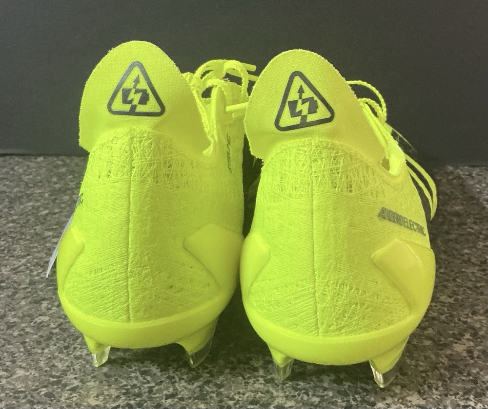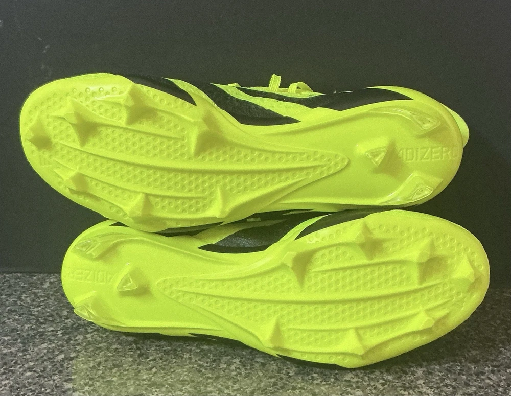 The product is a size 10 Adidas Adizero Strung Men's football cleats in yellow. These cleats are part of the Adidas Adizero product line and designed specifically for football players. They come in a unit quantity of 1 and are personalized with the Adidas brand logo. Perfect for players looking for high-quality, non-personalized cleats in a vibrant yellow color, these Adidas Adizero cleats are a great choice for serious athletes.