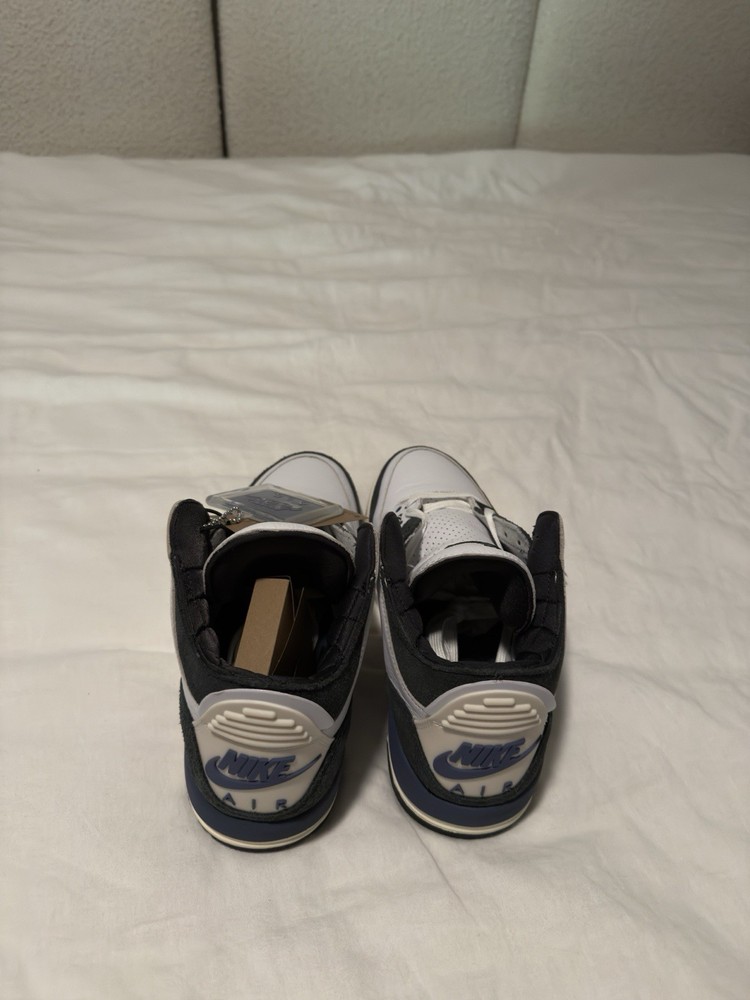 Step into style with the Jordan 3 Retro OG SP A Ma Maniere - For The Love Diffused Blue, a sneaker that embodies the spirit of retro basketball with modern comfort. The sleek white leather upper, complemented by the iconic diffused blue accents, offers a striking look that's sure to turn heads. With a foam insole and cushioned lining, these mid-top sneakers provide all-day comfort, perfect for both on and off the court. The Air Jordan 3 Retro is a staple for any sneaker enthusiast, featuring the signature lace-up closure and durable rubber outsole designed for superior traction. Ideal for a range of occasions, from activewear to casual workdays, this limited edition pair, styled with the code HV8571-100, unites style and performance. Whether you're a basketball player or a fashion-forward individual, these sneakers are crafted to elevate your wardrobe.