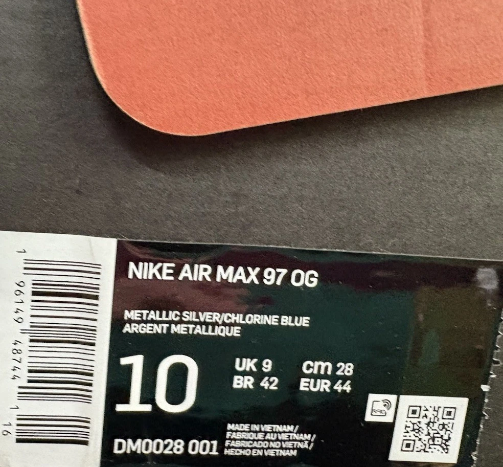 Style Code:DM0028-001Upper Material:MeshBrand:NikeColor:SilverDepartment:MenUS Shoe Size:10Product Line:Nike Air MaxRelease Year:2022Model:Nike Air Max 97Style:SneakerType:AthleticCountry of Origin:Vietnam