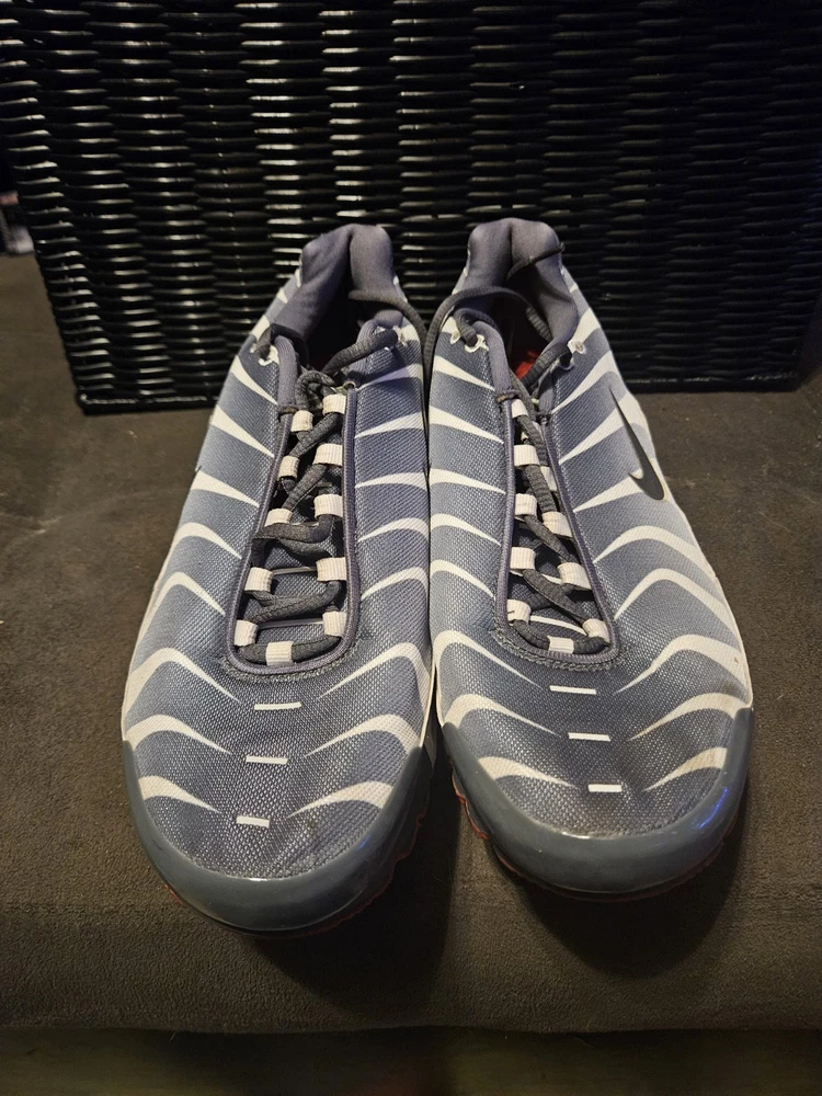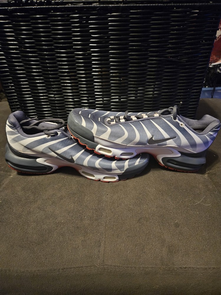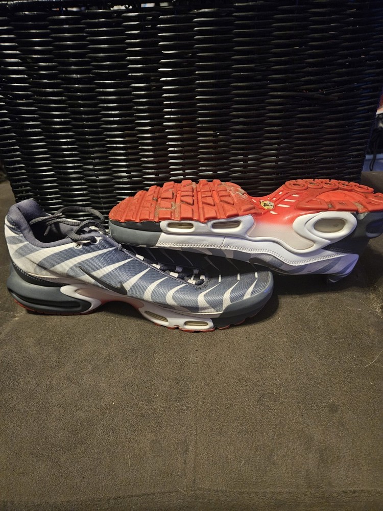 The product is a pair of Nike Air Max Plus sneakers in size 10, released in 2019. These athletic shoes are part of the Nike Air Max product line and feature a stylish white colorway. The model is designed specifically for men and includes the iconic Air Max cushioning technology for comfort and support during physical activities. The style code for this particular model is AQ0237-100, making it easily identifiable for fans of Nike footwear. NO BOX NO insoles