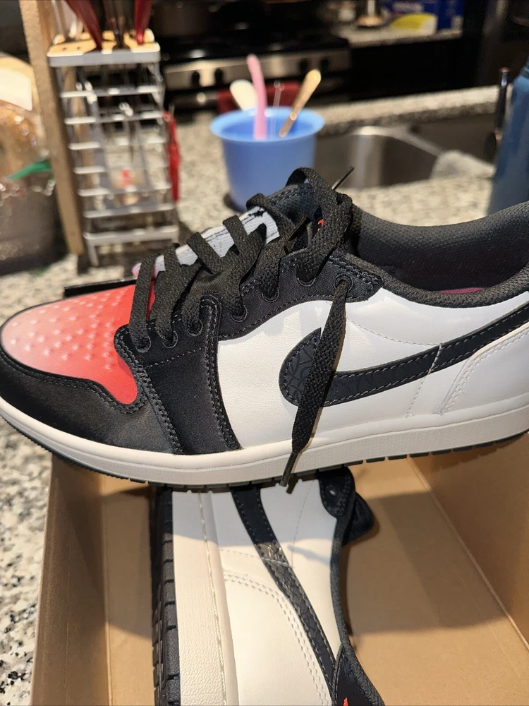 Step up your sneaker game with the Size 8.5 Paris Saint-Germain x Air Jordan 1 Retro OG Low Sail Pink Oxford. This stylish and comfortable sneaker features a Low Top Shoe Shaft Style and a Jordan 1 Retro Low Silhouette, perfect for any athletic occasion. The sneaker is made with high-quality Leather Upper Material and boasts a striking Red Color that is sure to turn heads. The Air Jordan 1 model has been a fan favorite since its introduction in 1992, and this collaboration with Paris Saint-Germain adds a unique touch to the iconic design. With a Style Code of HF8828-100 and a US Shoe Size of 8.5, this sneaker is perfect for any man who wants to make a statement with their footwear. Whether you're hitting the basketball court or just running errands around town, the Air Jordan 1 Retro OG Low Sail Pink Oxford is a must-have addition to your sneaker collection.