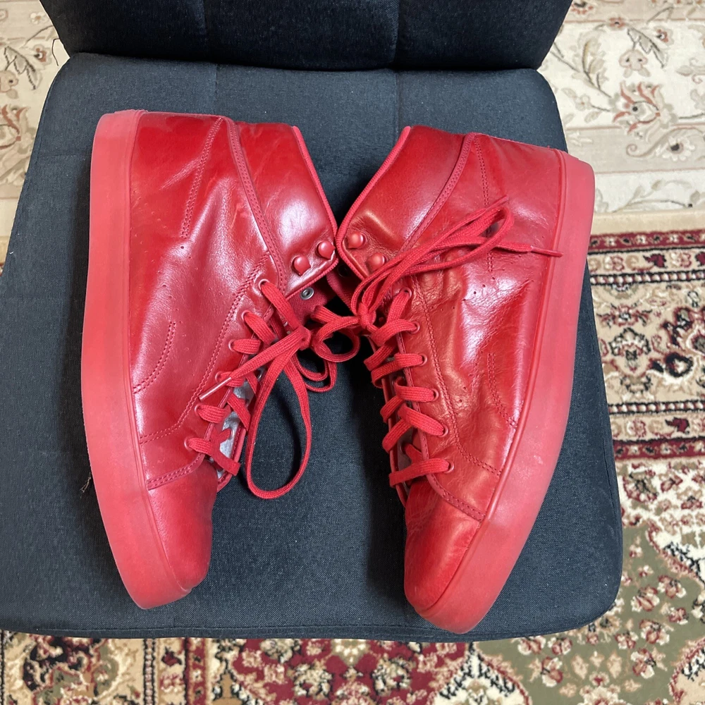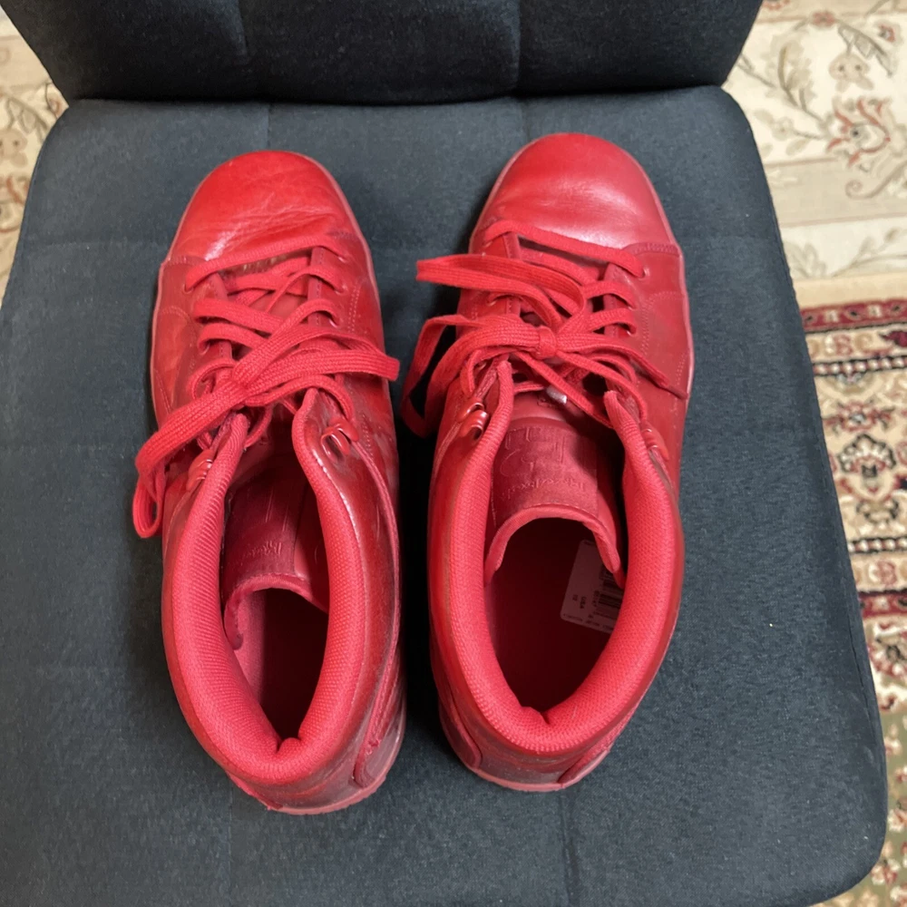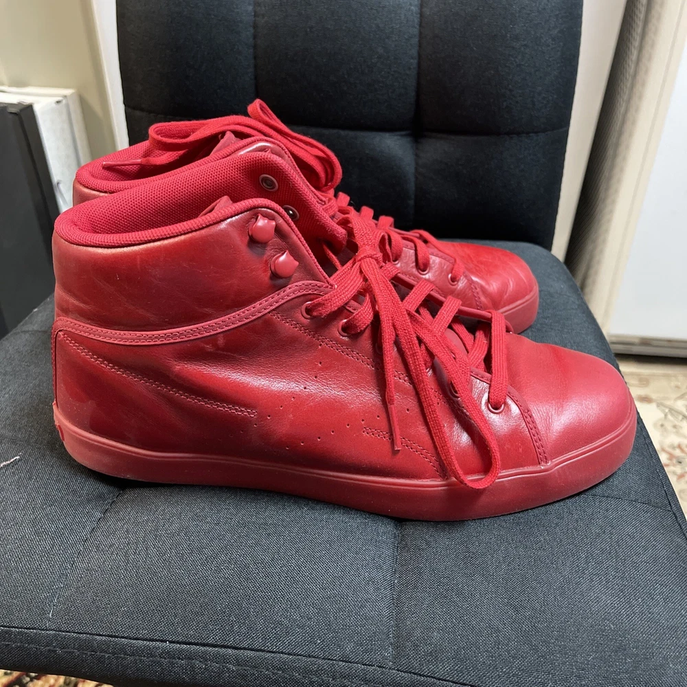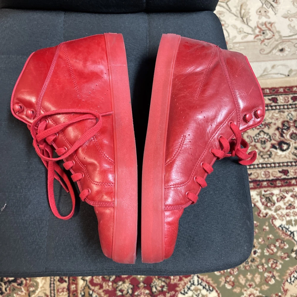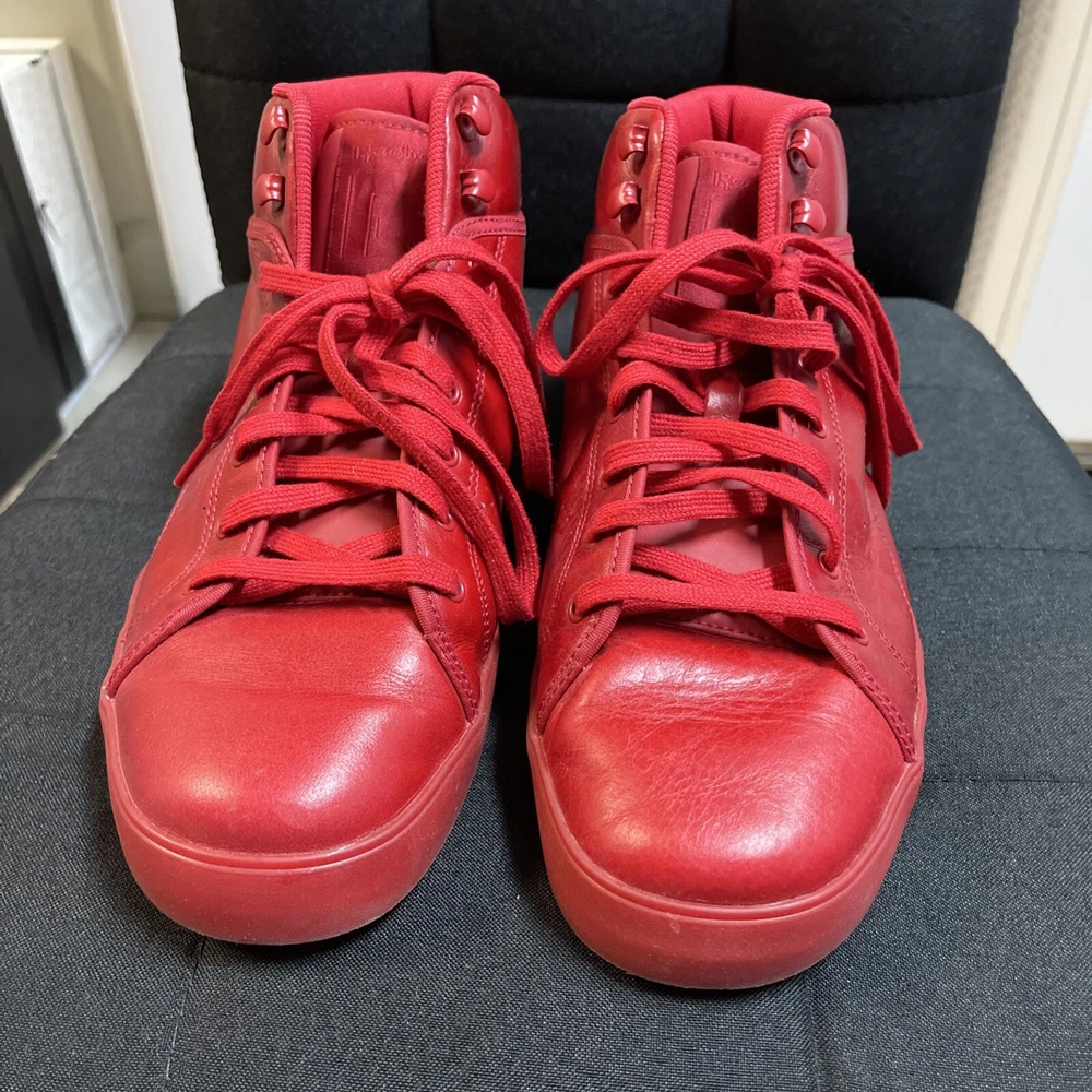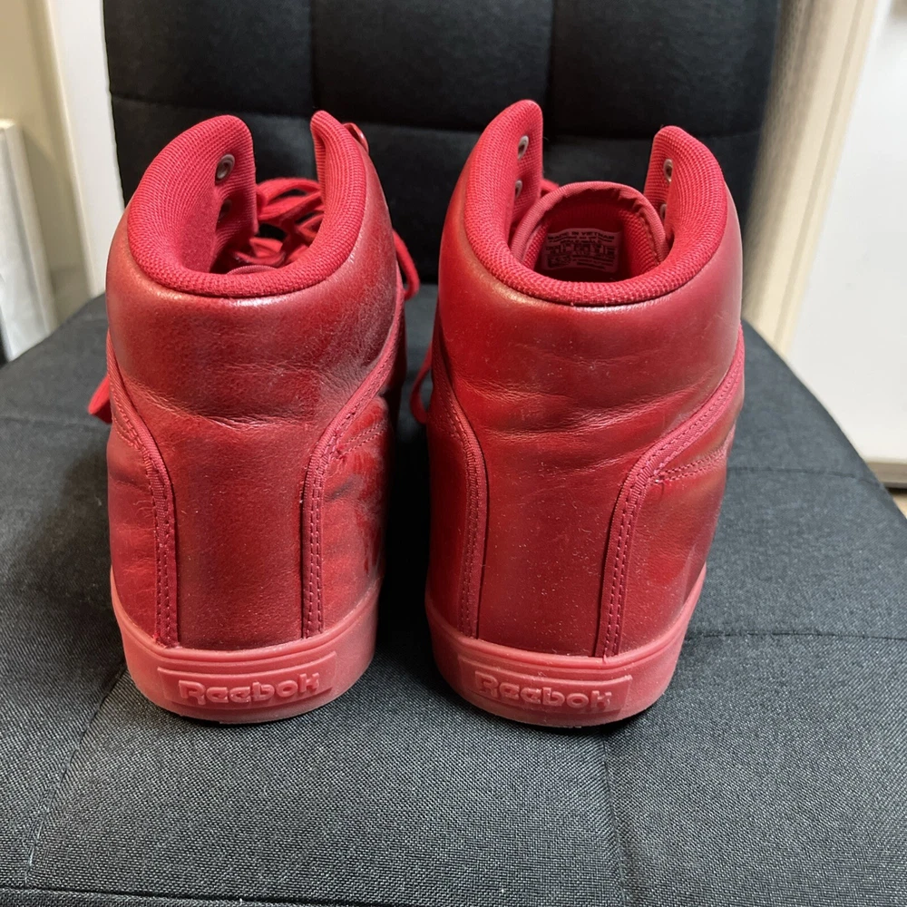This is a pre-owned pair of Reebok T Raww sneakers in size 10 for men from the 2013 release. The shoes feature a mid-top shaft style in a vibrant red color known as Excellent Red/Excellent Red. The style code for this model is J97764, and they were released on February 14, 2013. These athletic sneakers are designed with a sleek and stylish look, perfect for casual wear or for adding a pop of color to any outfit. No box only worn once
