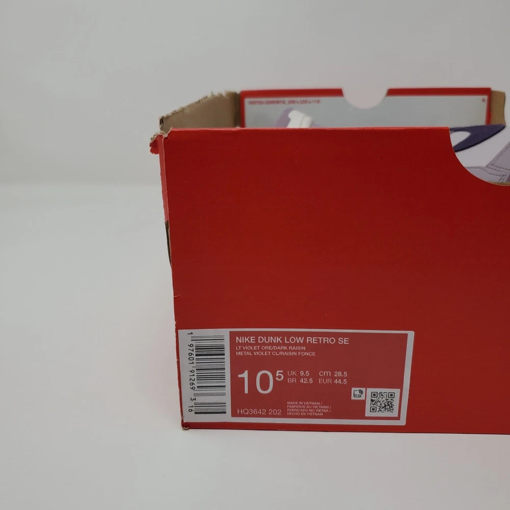 Manufacturer Color: Light Violet Ore/Platinum Violet/Team Gold/Dark Raisin Product Line: Nike Dunk Release Date: 20241017 Release Year: 2024 Brand: Nike Shoe Shaft Style: Low Top Full Model: Nike Dunk SE Style: Sneaker Upper Material: Leather Nickname: Light Violet Ore Color: Purple Style Code: HQ3642-202 Department: Men Model: Nike Dunk US Shoe Size: 10.5 Type: Athletic