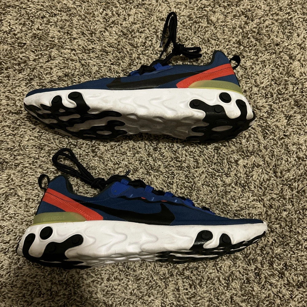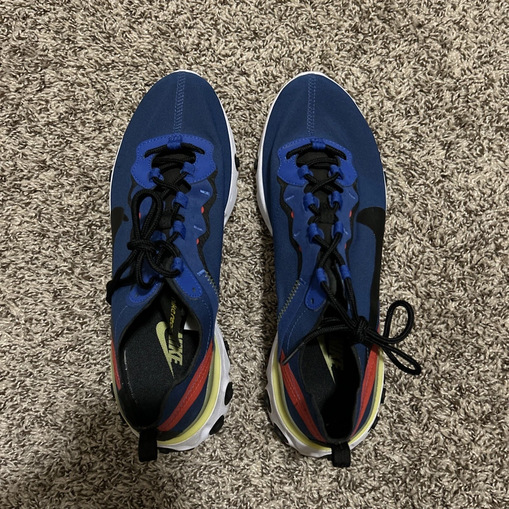 Elevate your sneaker game with these Nike React Element 55 in Game Royal. With a low top shoe shaft style, these athletic sneakers are perfect for men who want to stay stylish while keeping it casual. The BQ6166-403 style code and Nike Blue product line make these sneakers a must-have for any sneakerhead. These sneakers are customized-free and come in a US shoe size of 10.5. The royal theme and Game Royal nickname add a touch of sophistication to these sneakers, making them perfect for any occasion. Don't miss out on the chance to own these defect-free Nike sneakers.