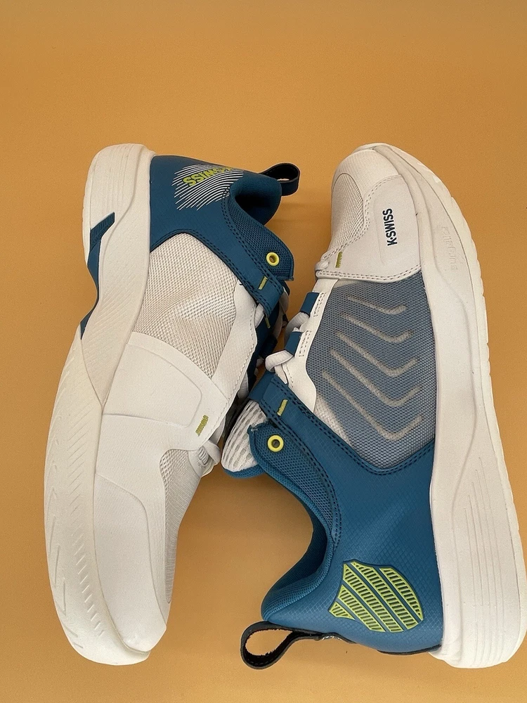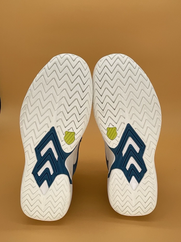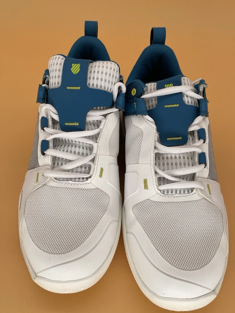 Elevate your activewear game with these K-Swiss Ultrashot Team Men's Low Tennis Shoes. These shoes are perfect for any occasion, whether you're hitting the gym, going for a walk, or just running errands. They come in a classic white color with accents of colorful designs, making them a stylish choice for any outfit. Featuring a low-top shoe shaft style, these shoes provide arch support, cushioning, and breathability, ensuring your feet stay comfortable all day long. The adjustable lace-up closure and pull-on design make them easy to wear, while the rubber outsole provides traction and durability. These shoes are a must-have for any athleisure wardrobe.