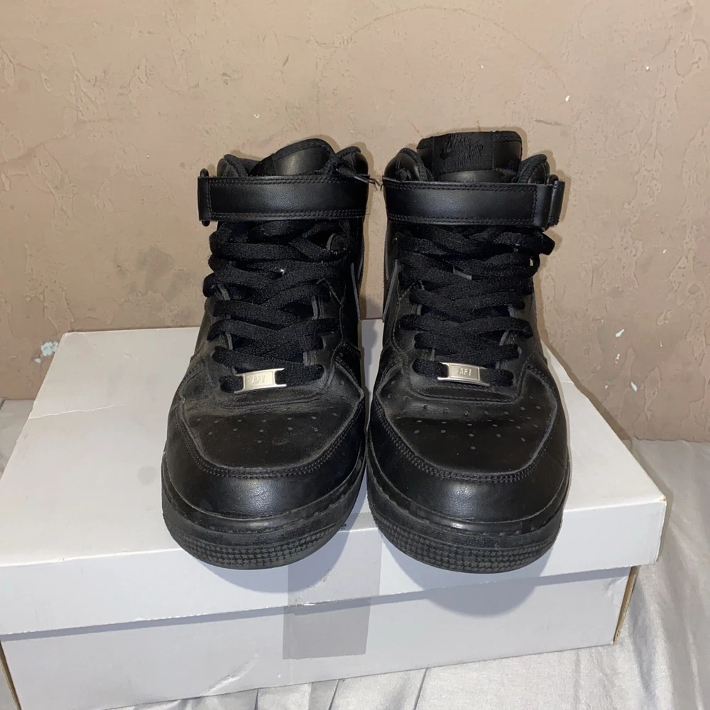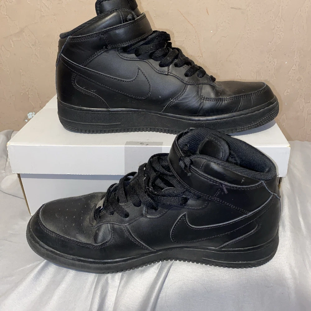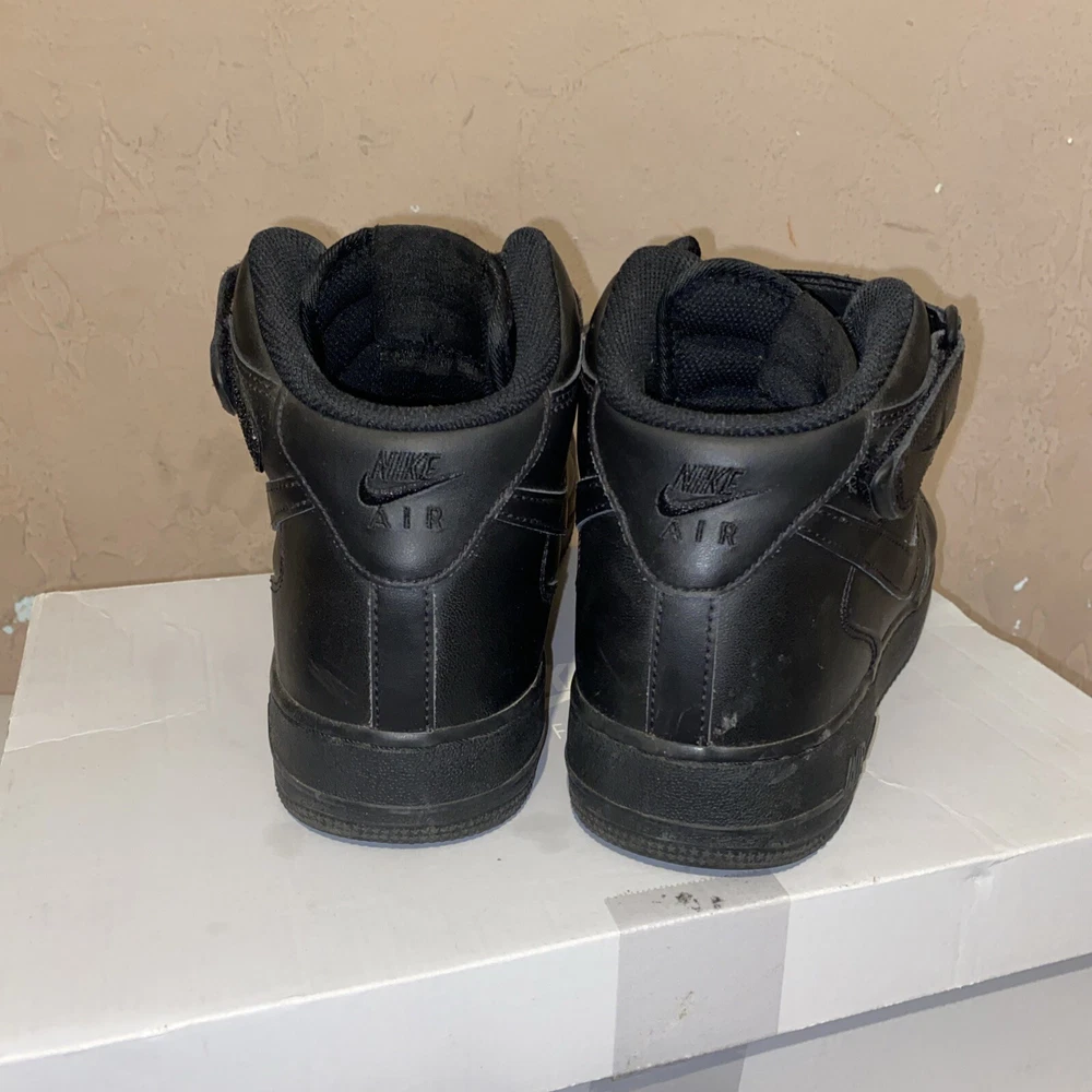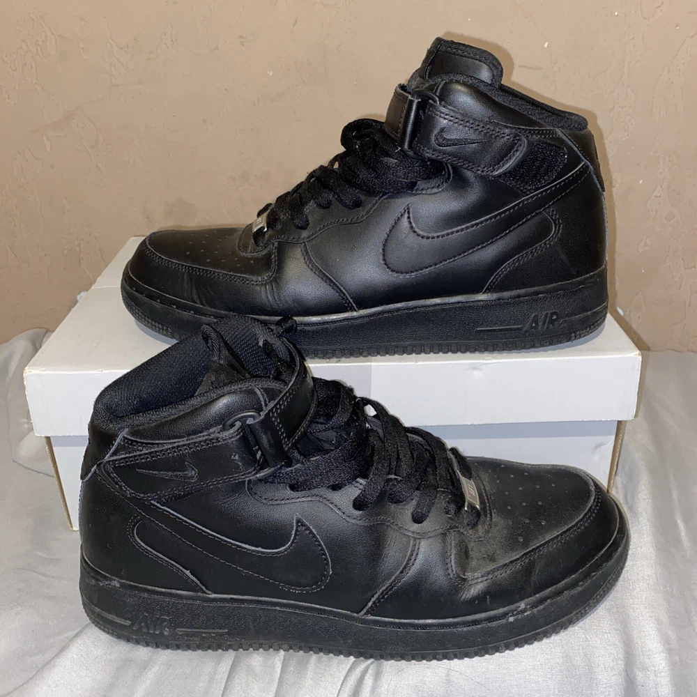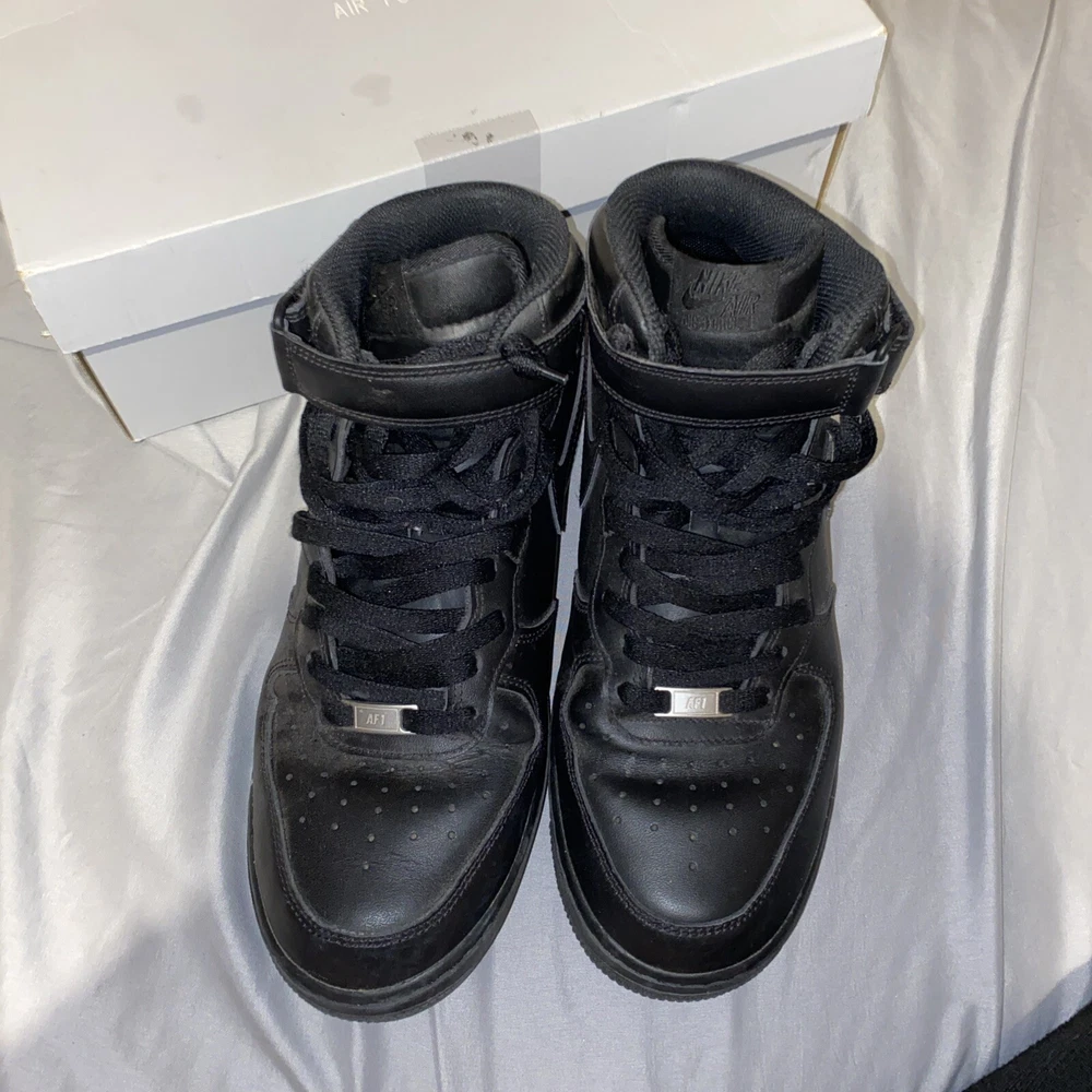High top black air forces honestly just grew out of them and would like to get off my hands they are in pretty good shape they just got creases at the toe
