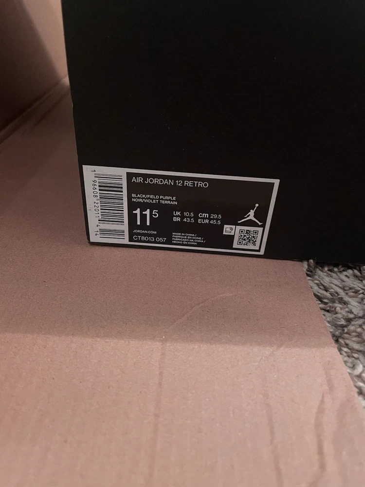 Air Jordan 12 Retro Size: 11.5 Color: Black/field purple W/box: Yes