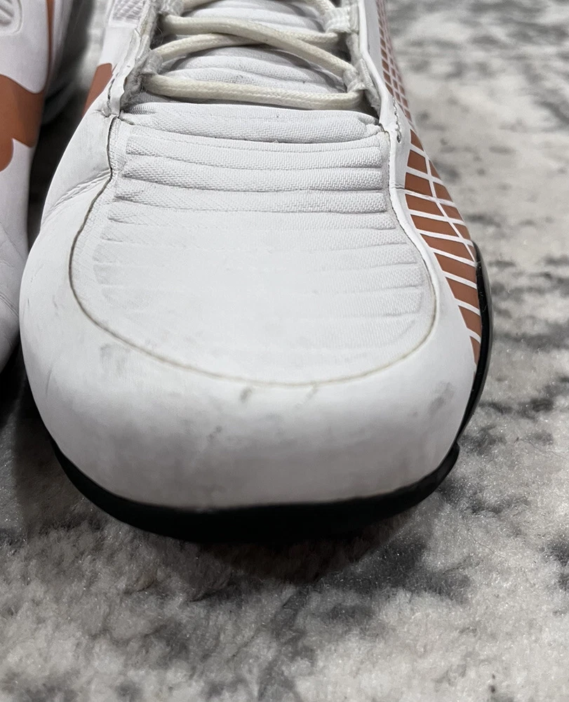 Scuffs on the front of both shoes. Shoes in excellent shape and priced accordingly.