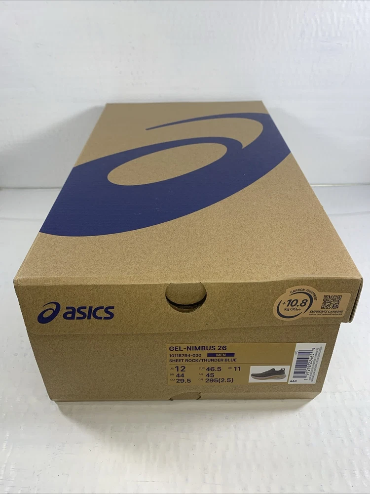 Department: Men Brand: ASICS Color: Gray US Shoe Size: 12 Product Line: ASICS GEL Closure: Tie Type: Athletic Style Code: 1011B794-020 Model: ASICS GEL-Nimbus Shoe Width: D Upper Material: Synthetic Style: Sneaker Insole Material: Gel Performance/Activity: Gym & Training, Running & Jogging, Walking