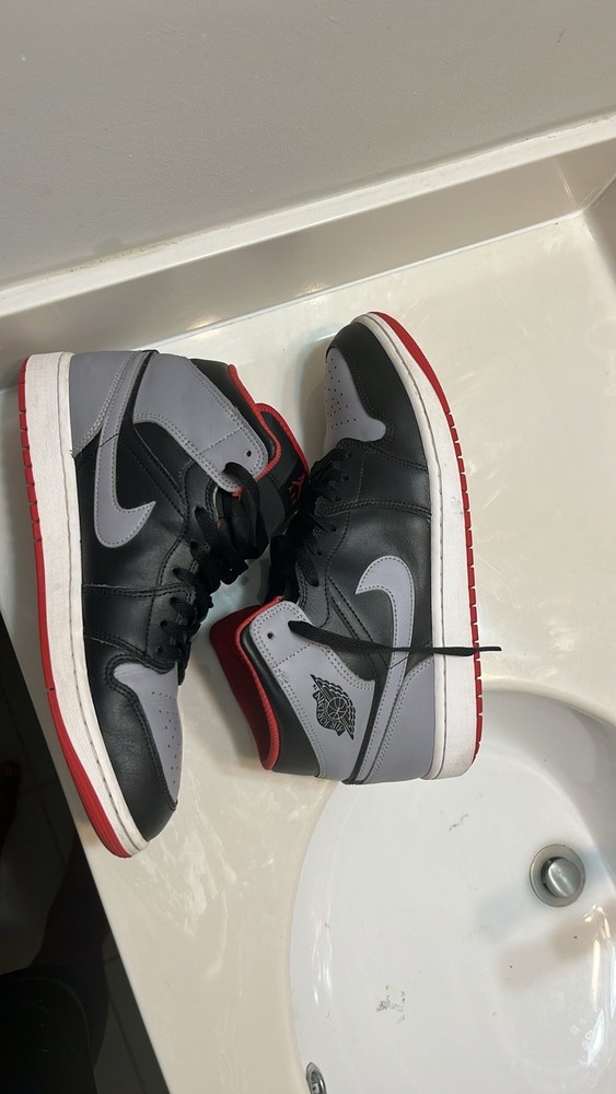 The product is a pair of men's athletic shoes, specifically the Air Jordan 1 model in size 12. These lace-up sneakers are in a stylish gray color and are made of leather with a rubber outsole, suitable for casual occasions during the summer season. They are not signed or vintage and were released in 2021. The shoes are part of the Air Jordan product line and are designed for performance activities like boxing, making them a versatile and fashionable choice for men's footwear. Selling it for 65