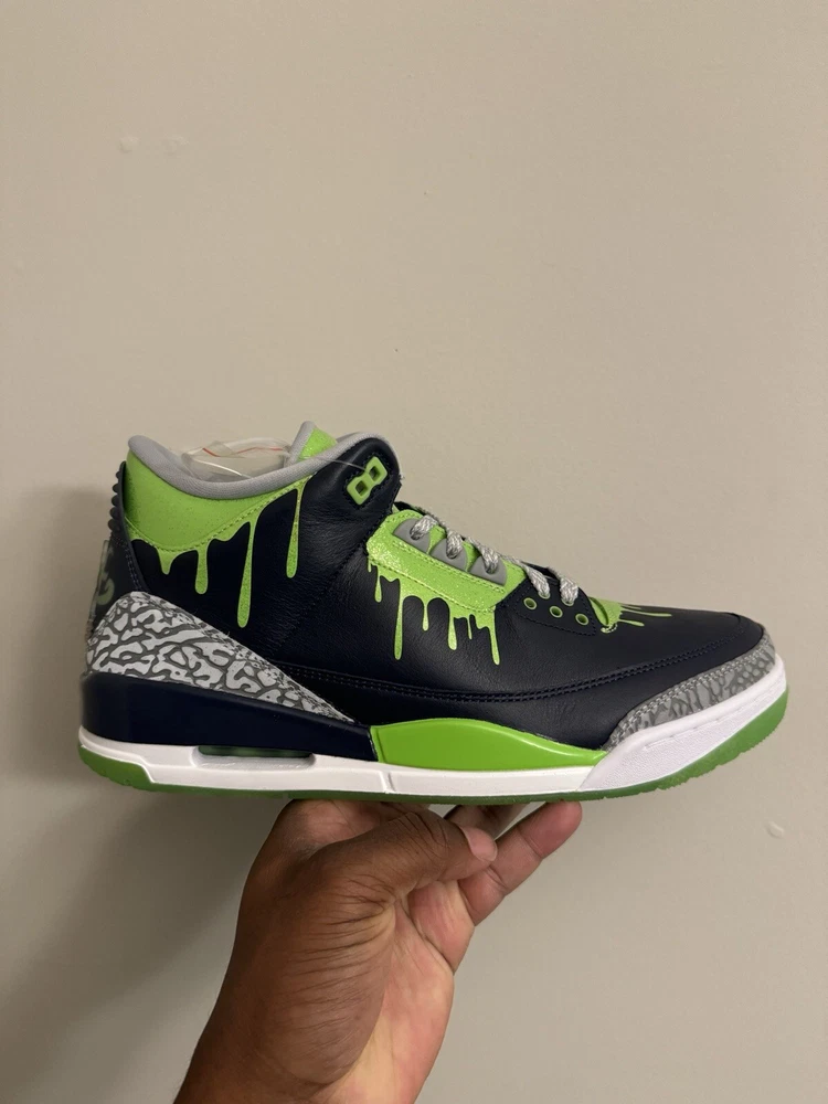 Elevate your sneaker game with these limited edition Air Jordan 3 Doernbecher in blue. Designed with a mid-top silhouette, tie and lace-up closure, and a foam insole, these sneakers ensure both comfort and style. The leather upper material and rubber cleat type make them suitable for various occasions, including gym and training, walking, cross-training, CrossFit, and basketball. These sneakers are perfect for men who want to add a touch of retro to their wardrobe. The solid pattern and Snike character make them a versatile addition to any casual or activewear outfit. With a release year of 2023 and a US shoe size of 15, these Air Jordan 3 Doernbecher sneakers are a must-have for any sneakerhead.