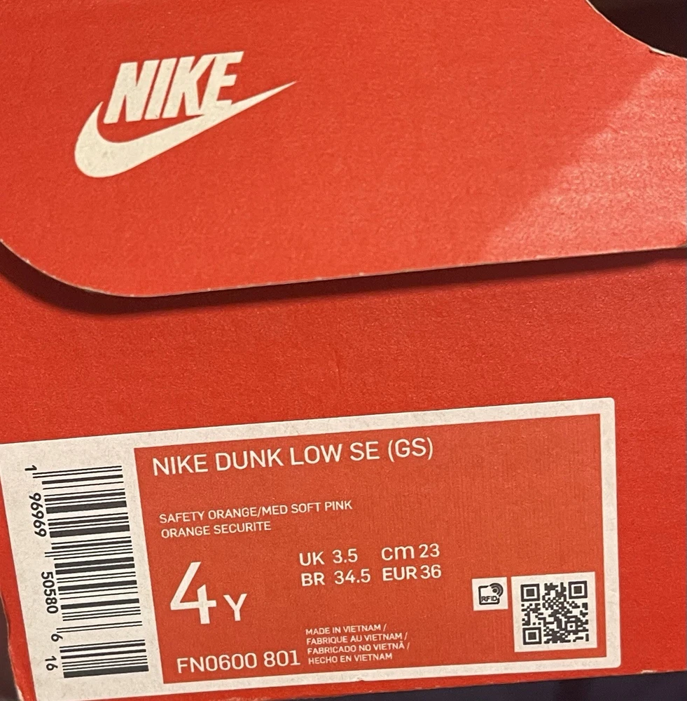 Here I have a pair of Nike dunk low se 4 Youth Everything you need brand new in the box.