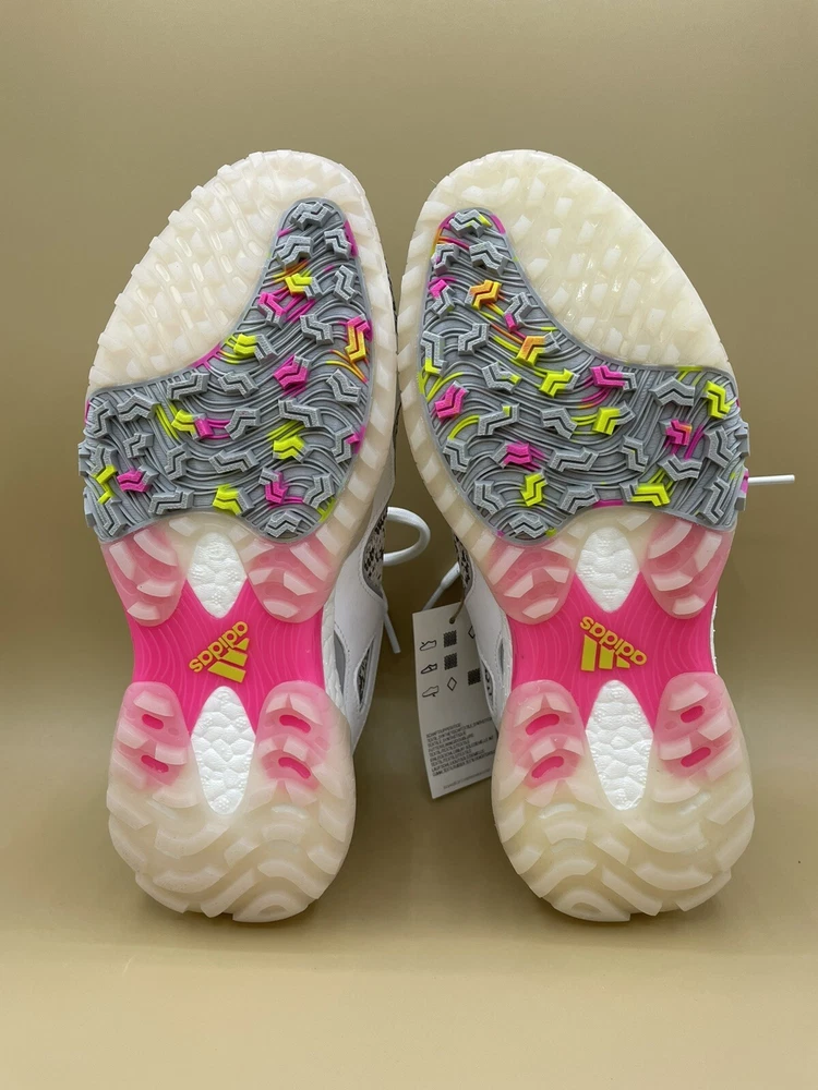 Elevate your golf game with these stylish and comfortable ADIDAS WOMEN'S CODECHAOS 21 golf shoes. The shoes are designed with a low-top shoe shaft style and lace-up closure, ensuring a secure and comfortable fit during your swing. The synthetic upper material is accented with a vibrant Batik pattern, making these shoes a fashionable addition to your activewear or casual outfit. These shoes are perfect for walking and playing golf during the summer, fall, or spring seasons. The outsole material is made of rubber, providing excellent traction on the course. Additionally, the shoes are waterproof, spikeless, and feature a comfortable performance fit, making them an ideal choice for any active or casual occasion.