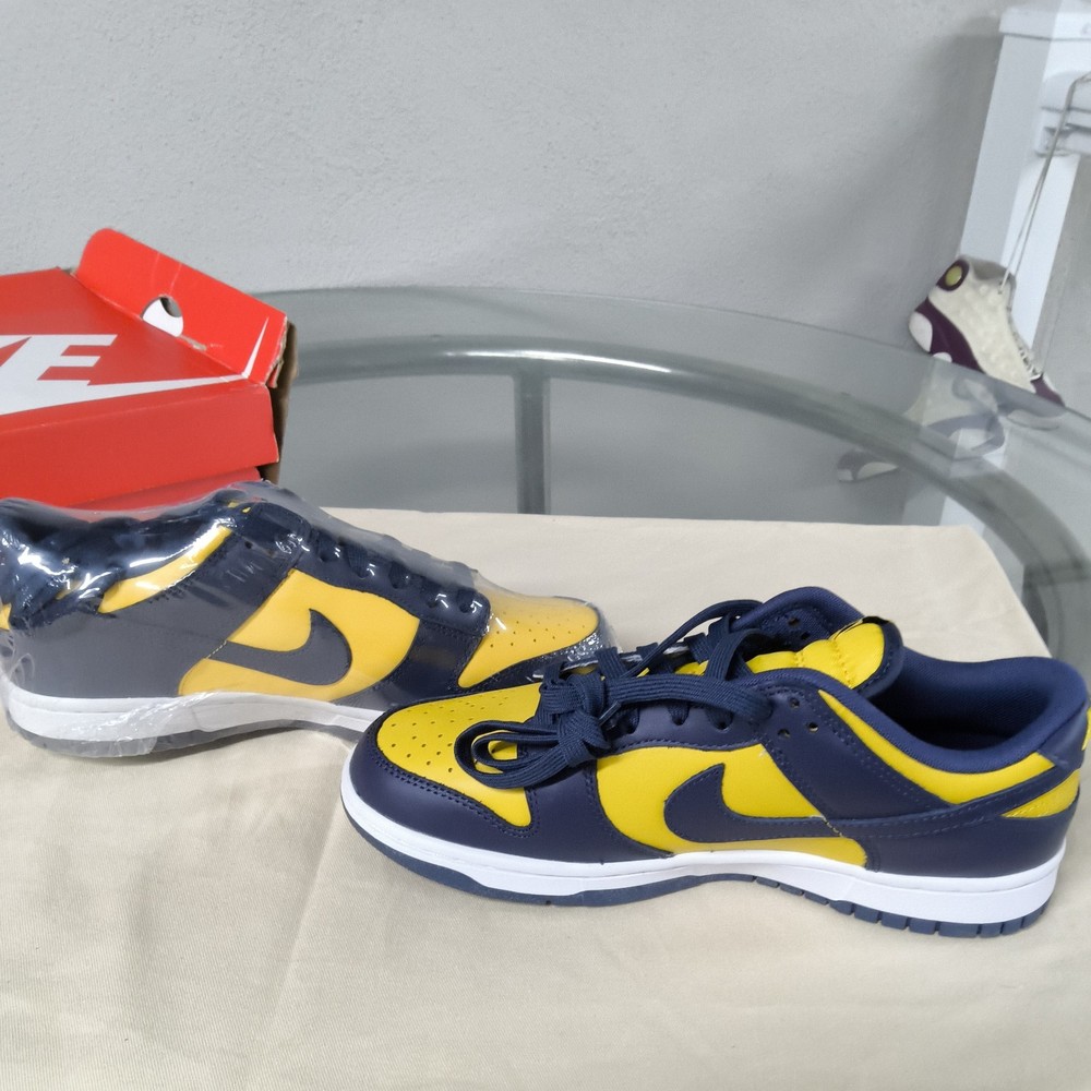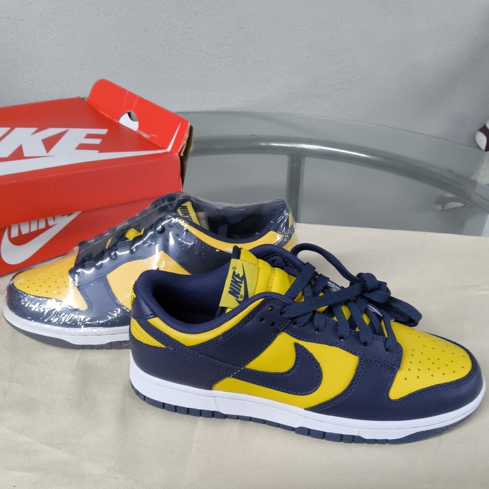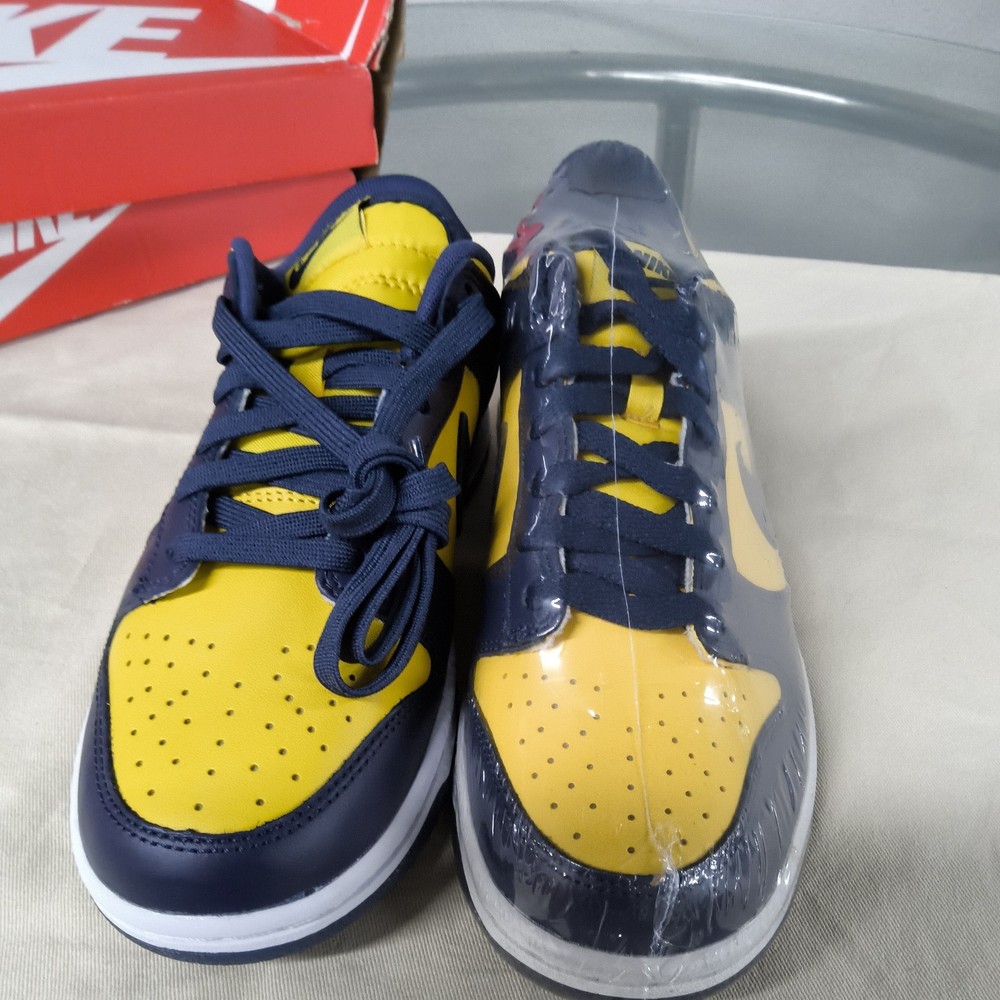 This is a size mismatched pair. The Nike Dunk Low Michigan 2021 in size 7 is a stylish and athletic sneaker perfect for men. This shoe features a low top design, leather upper material, and a multicolor colorway specific to the Michigan theme. Released in 2021, this Nike Dunk model is part of the iconic Nike Dunk product line, known for its quality and fashionable design. Ideal for sports or casual wear, this sneaker combines comfort and style in one sleek package.