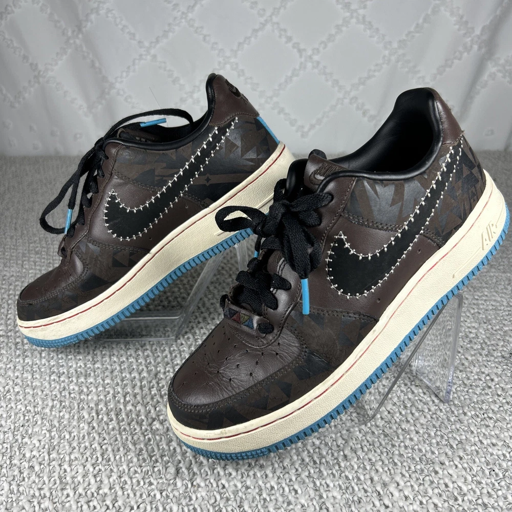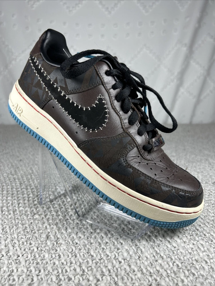 Color:BrownShoe Shaft Style:Low TopType:AthleticBrand:NikeStyle Code:500090-204Style:SneakerModel:Nike Air Force 1US Shoe Size:6Theme:Native AmericanProduct Line:Nike Air ForceDepartment:MenManufacturer Color:baroque brown/black-sl-dk trqsNickname:native american
