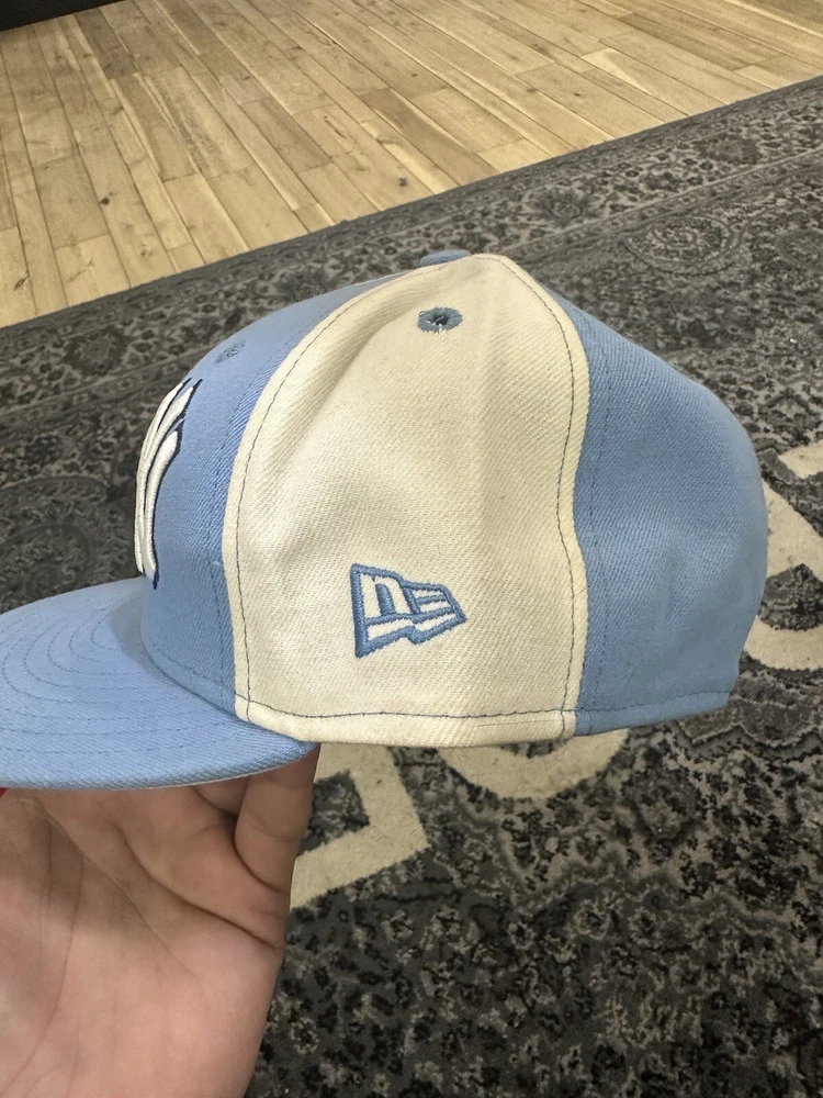 Size 7 1/4 sky blue yankees fitted hat double logo