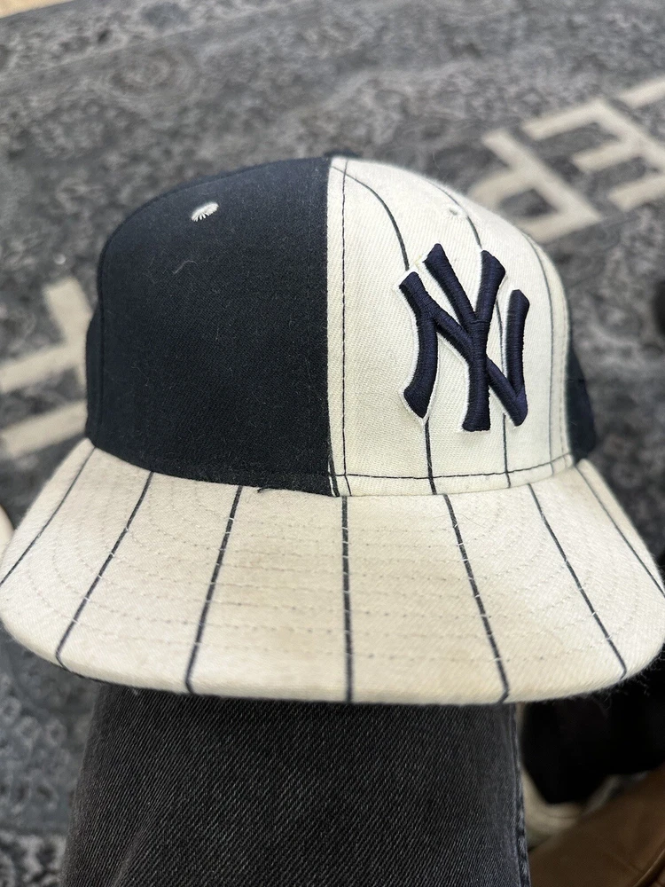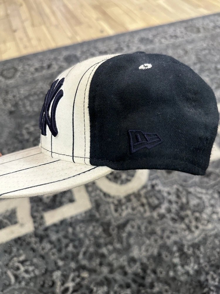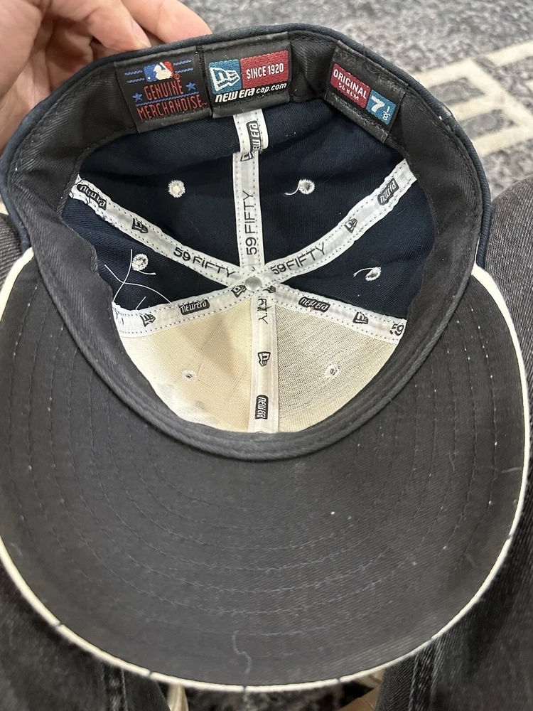 Size 7 1/8 white and navy yankees fitted hat