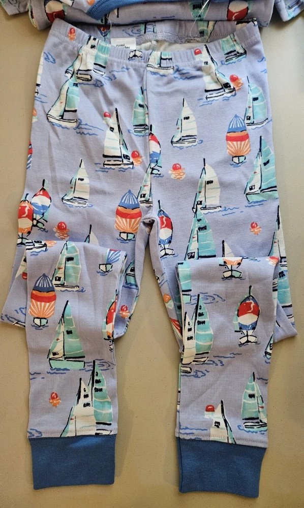 Brand: rumi+ryder Size: 7 Color: Light blue with sail boat print Material: 100%cotton. The top is short sleeved, and the bottom is pants. Non-smoking home.