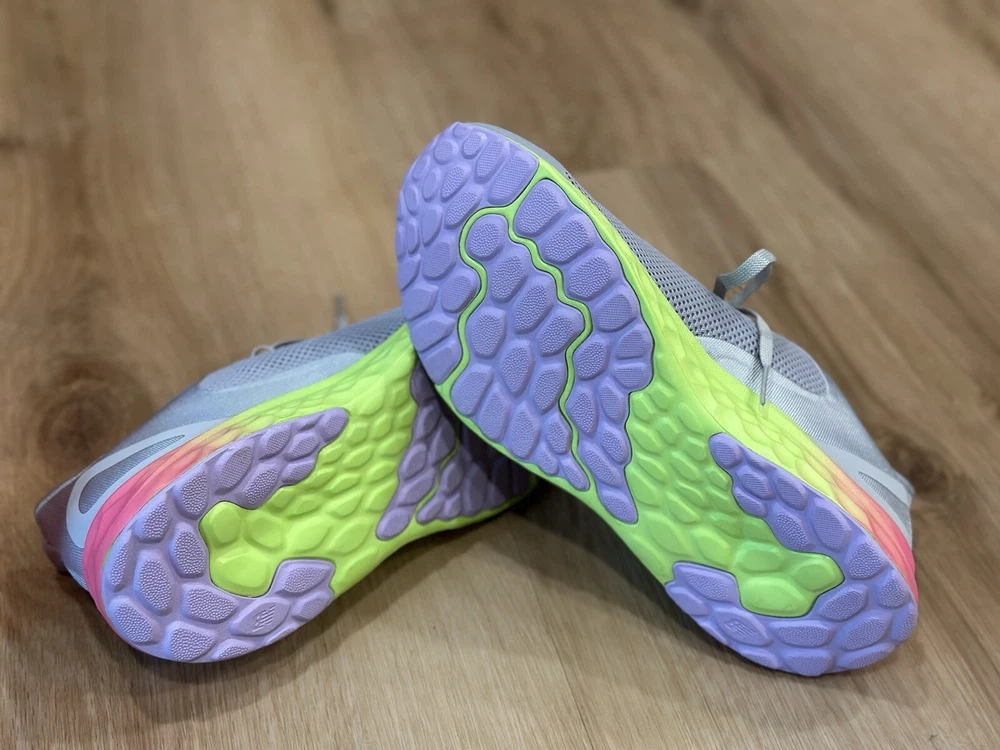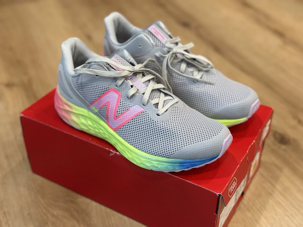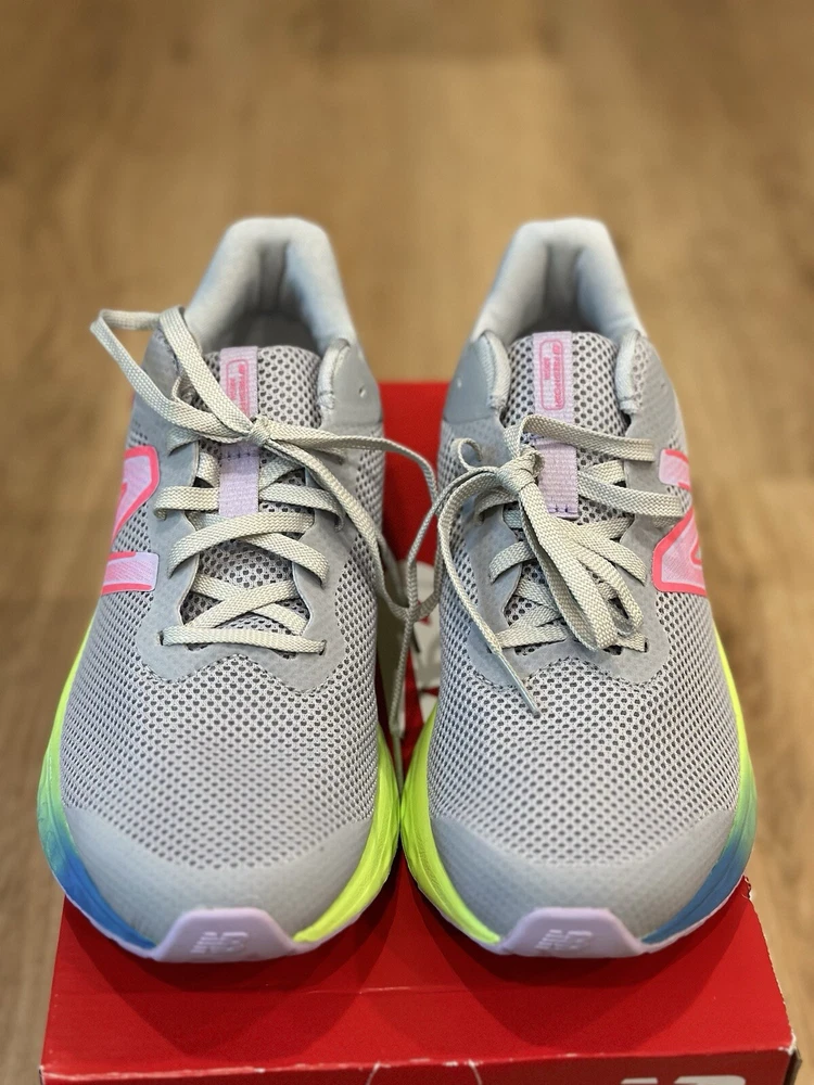 Elevate your child's athletic performance with these New Balance Fresh Foam Arishi v4 Cyber Lilac shoes. Designed with a low top shoe shaft style and lace-up closure, these shoes provide a comfortable fit for walking, running, and even tennis. With a flat heel height of under 1 inch, these shoes are perfect for kids who love to stay active. Made with synthetic upper material and foam insole material, these shoes ensure maximum comfort and durability. The rubber outsole material also provides extra grip and support. These shoes are a perfect addition to your child's wardrobe and will become their go-to footwear for any activity.