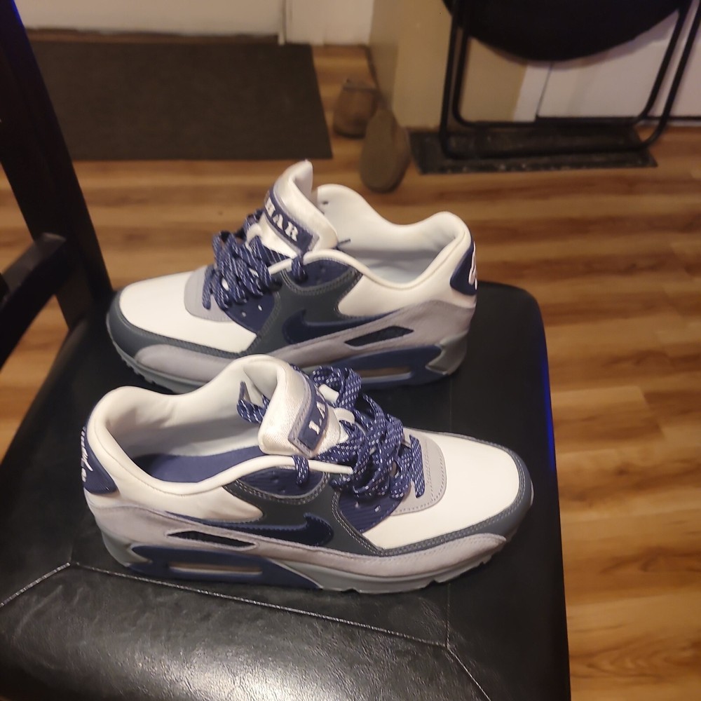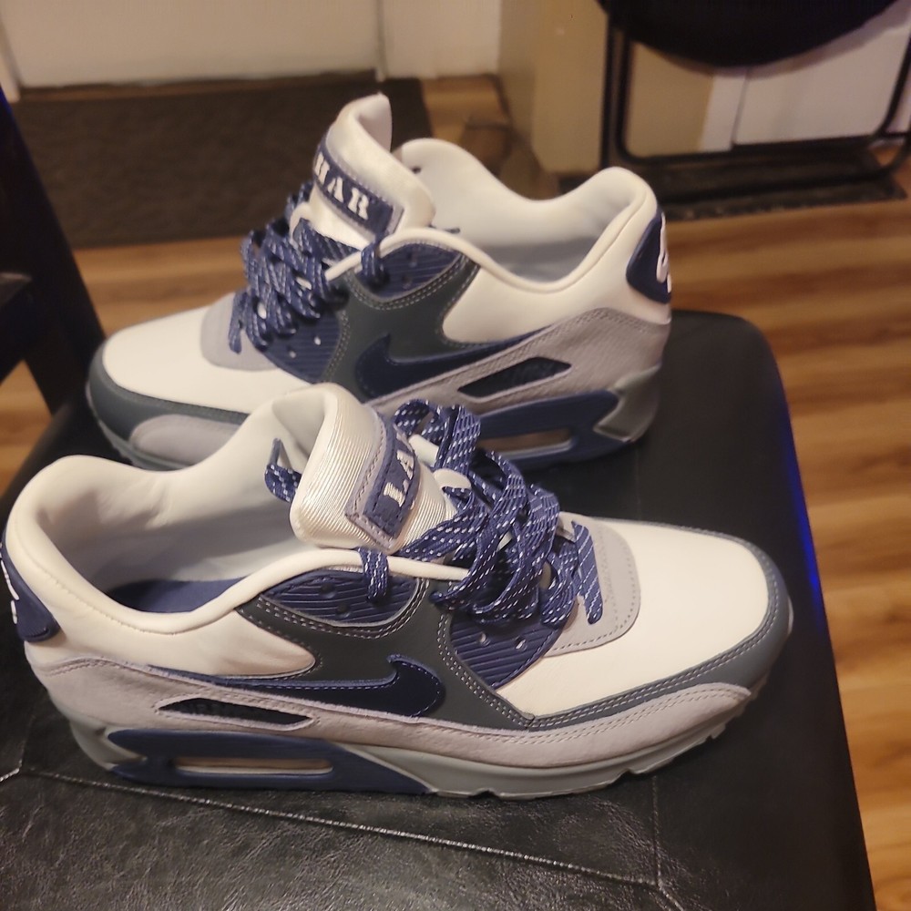 Elevate your footwear collection with the Nike Air Max 90 NRG Lahar Escape in a sleek Indigo colorway, size 7.5. A harmony of style and comfort, these sneakers feature the iconic Air Max cushioning that provides exceptional support for all-day wear, while the unique Lahar Escape nickname adds a distinctive edge. Crafted with a premium leather upper and a contrasting white, neutral indigo, and smoke grey color palette, these Nike Air Max 90 sneakers are designed to turn heads. The style code CI5646-100 signifies their authenticity, making them a must-have for any sneaker enthusiast or collector of the Nike Air Max product line.