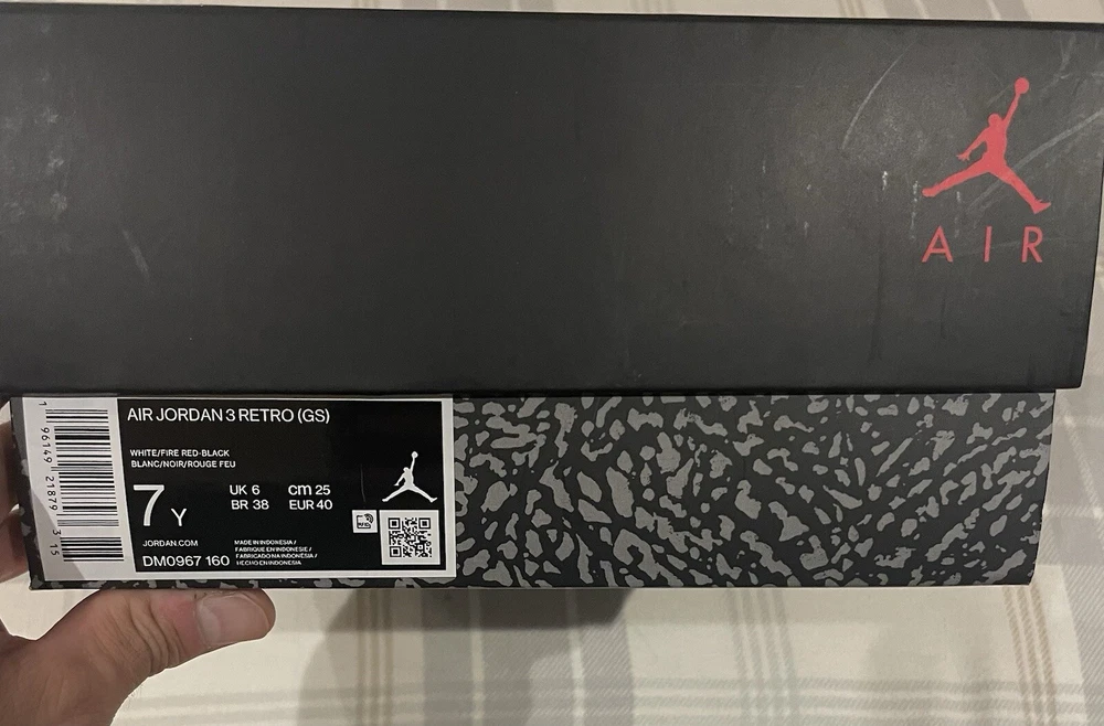 Slightly worn 2022 Jordan3 retro style in excellent condition. Please look at all the pictures and feel free to ask me any questions you may have. Size 7 youth. Original box and receipts
