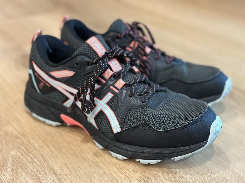 Elevate your running game with these stylish ASICS Gel Venture 8 sneakers. Designed for women, these low top shoes feature a geometric pattern in black, clear blue, and pink with the ASICS logo accents. The lace-up closure provides a secure fit, while the breathable mesh upper material and foam insole material ensure comfort during running and jogging. These athletic shoes are perfect for any sports enthusiast, with a style code of 1012 A708-008 and a UK shoe size of 6. The ASICS Gel Venture model is a popular choice for those who want both style and functionality in their footwear. Get ready to hit the gym or go for a run in style with these ASICS sneakers.