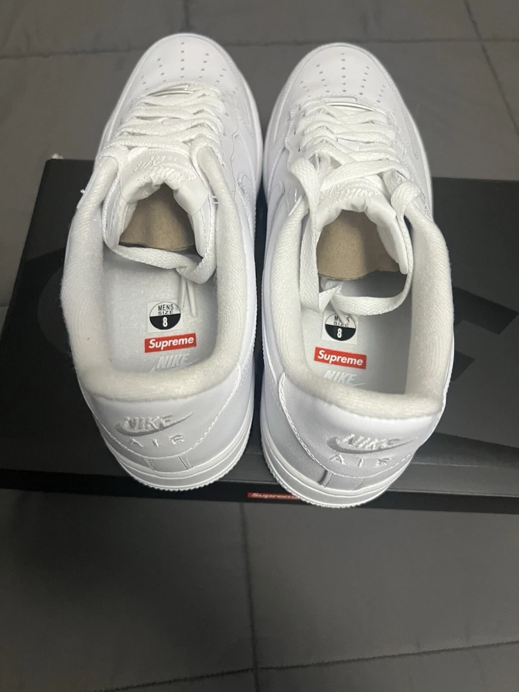 Brand new Size 8 - Nike Air Force 1 x Supreme Low Box Logo - White og everything. Price is a little negotiable. Message me if you have any questions🙂.